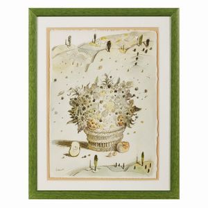 TULLIO PERICOLI (Colli del Tronto 1936) Cesto di frutta in un paesaggio 2000 acquerello e inchiostro su carta [..]