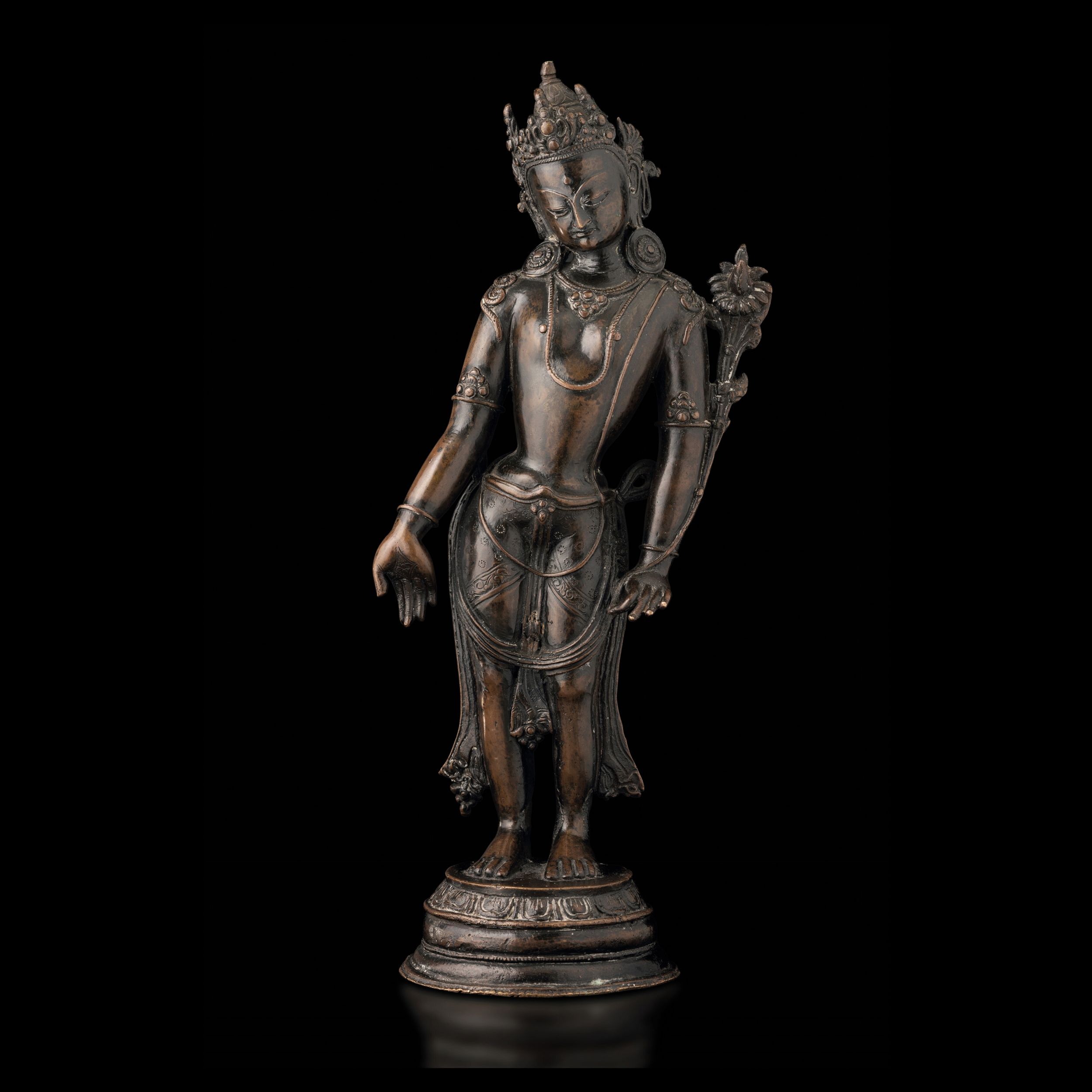 Figura di Padmapani stante in bronzo, Nepal, XVII secolo