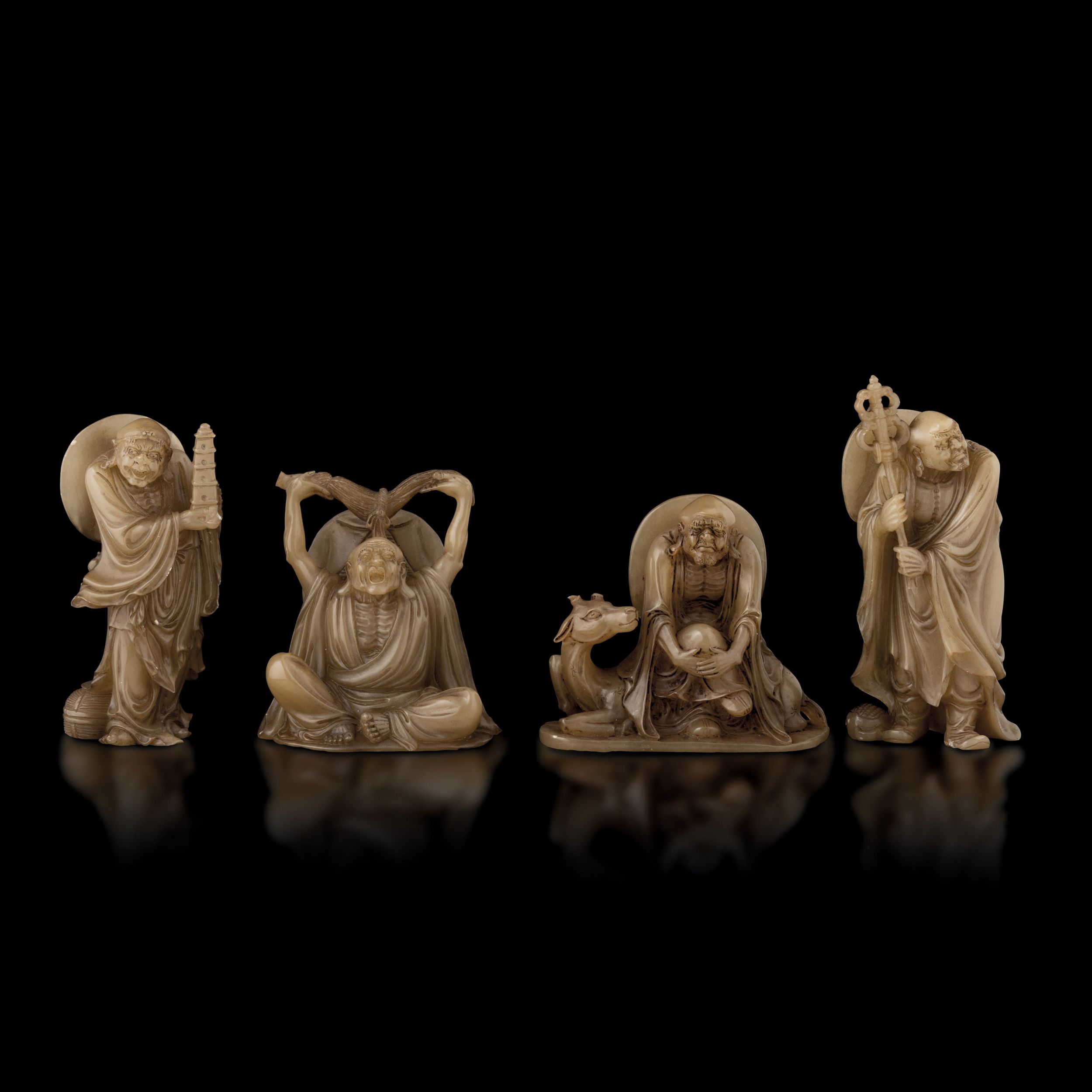Figure di quattro saggi in saponaria, Cina, Dinastia Qing, fine XIX secolo