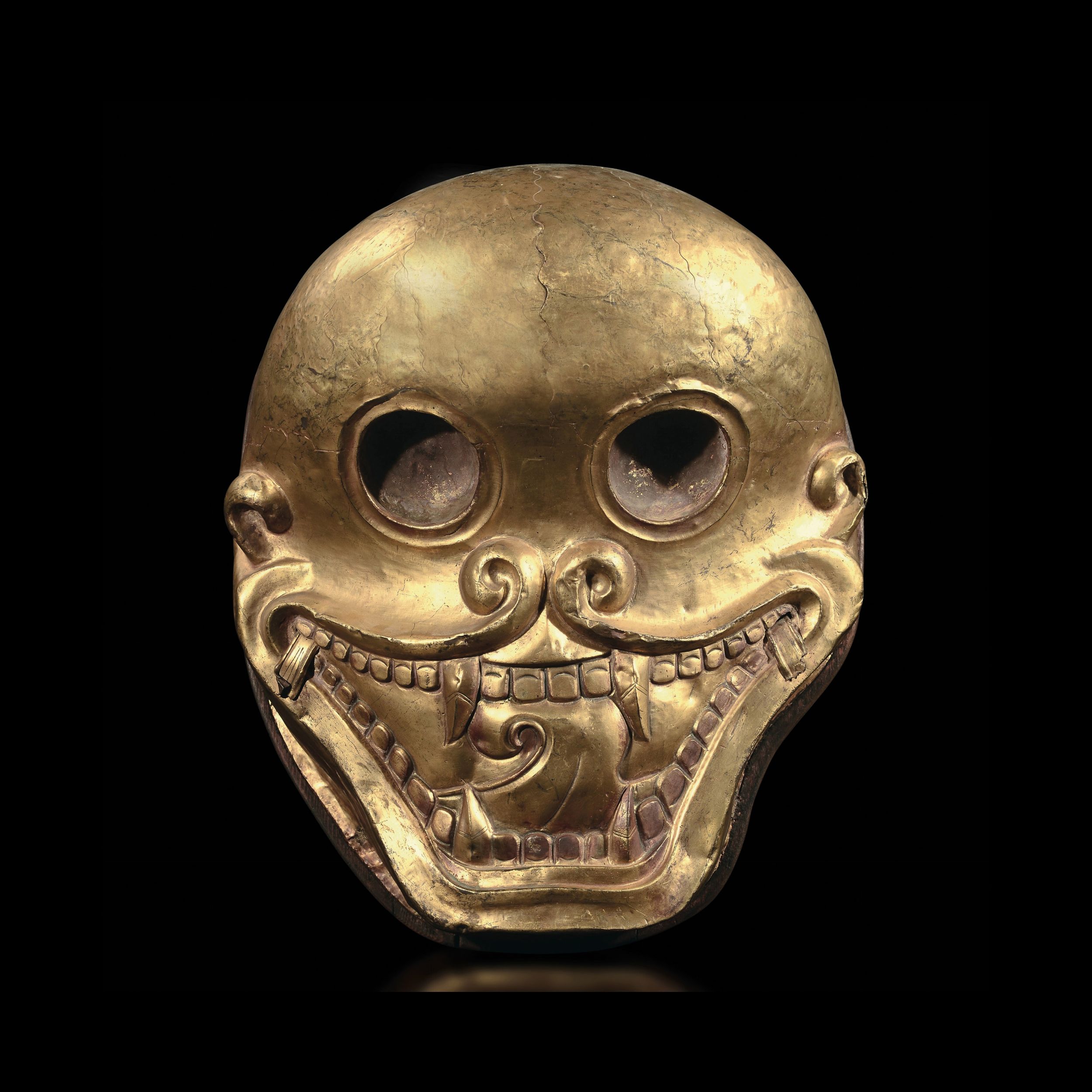 Grande mascherone rituale in rame dorato e sbalzato, Tibet, XVIII secolo