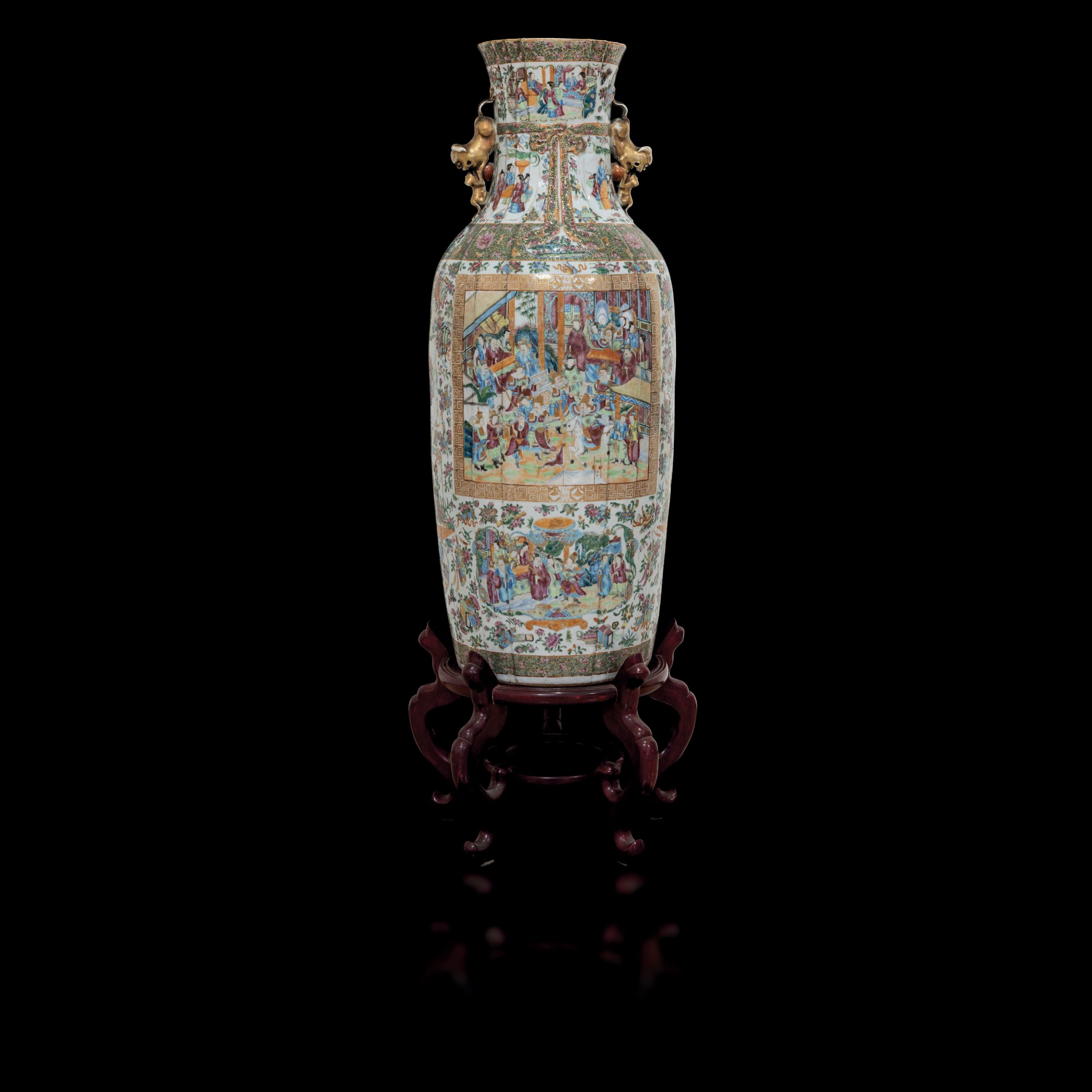 Grande vaso in porcellana a decoro di scene di vita comune, Famiglia Rosa, Canton, [..]