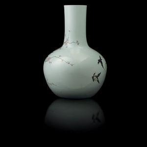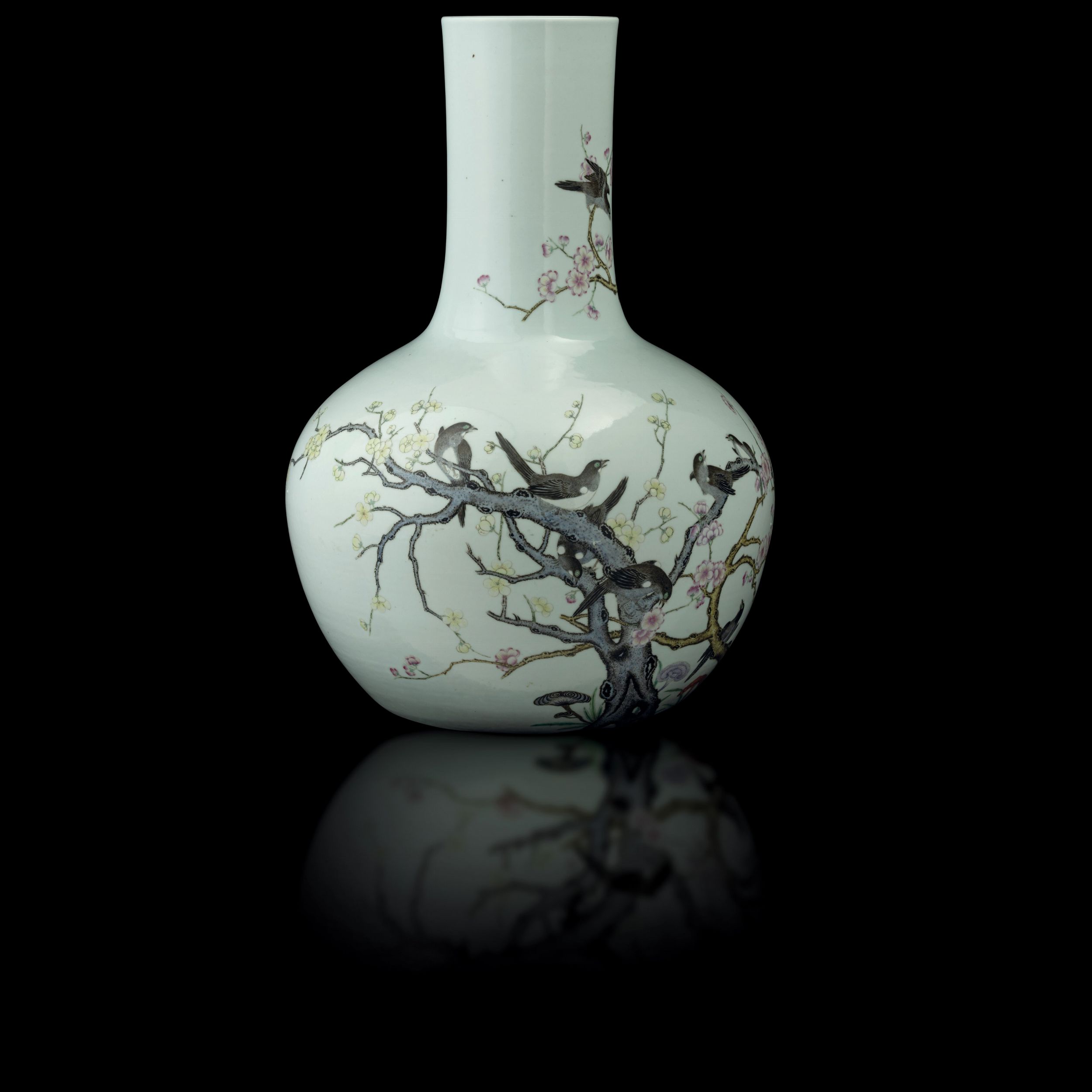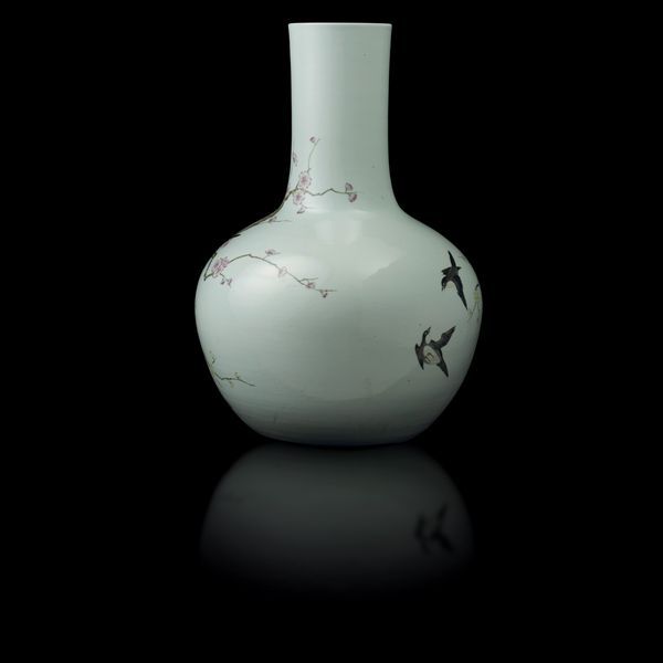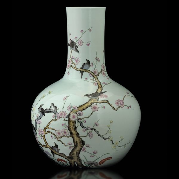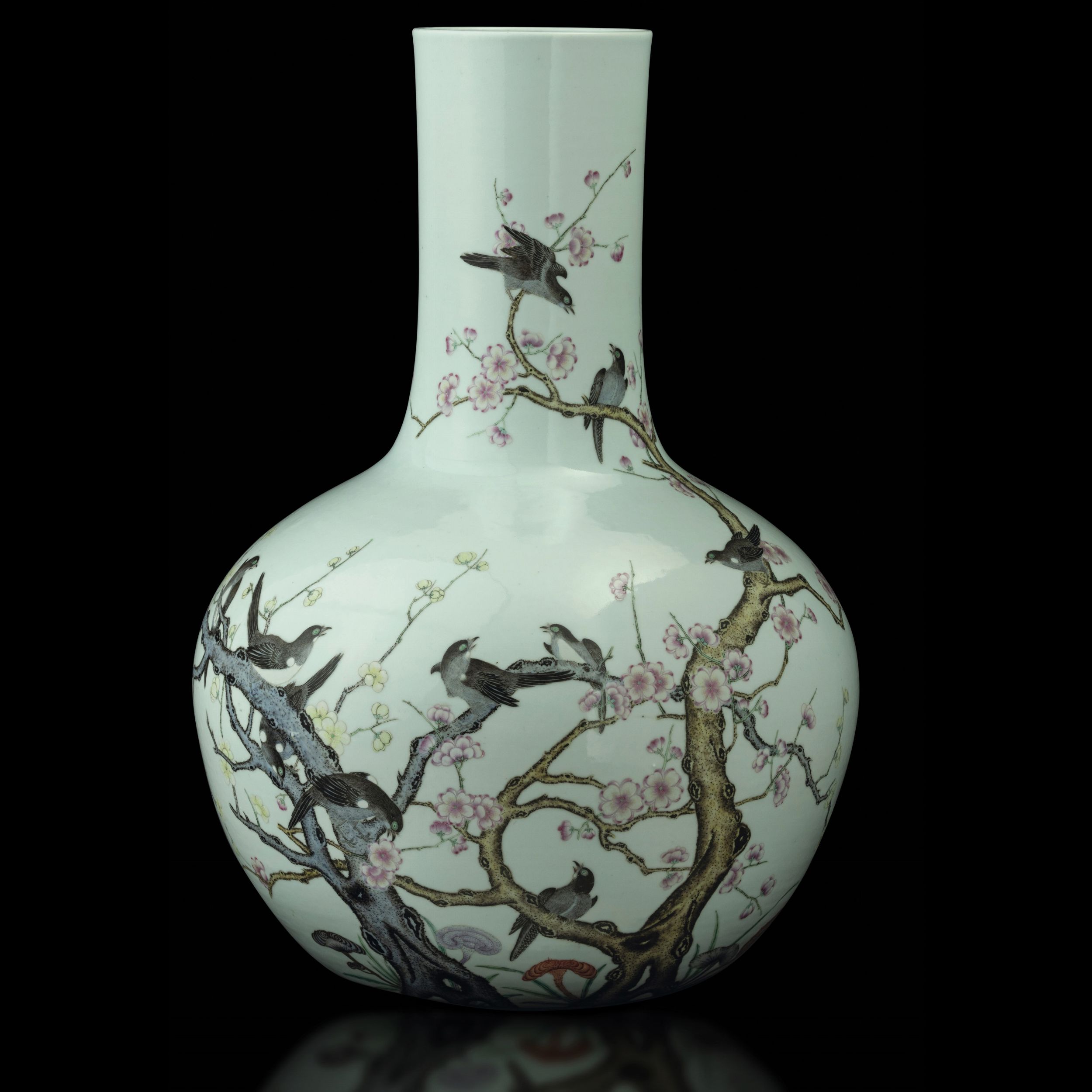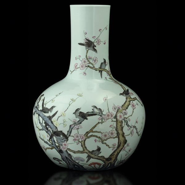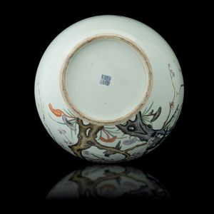 Grande vaso in porcellana con decoro di uccellini nello stile di falangcai tra rami [..]