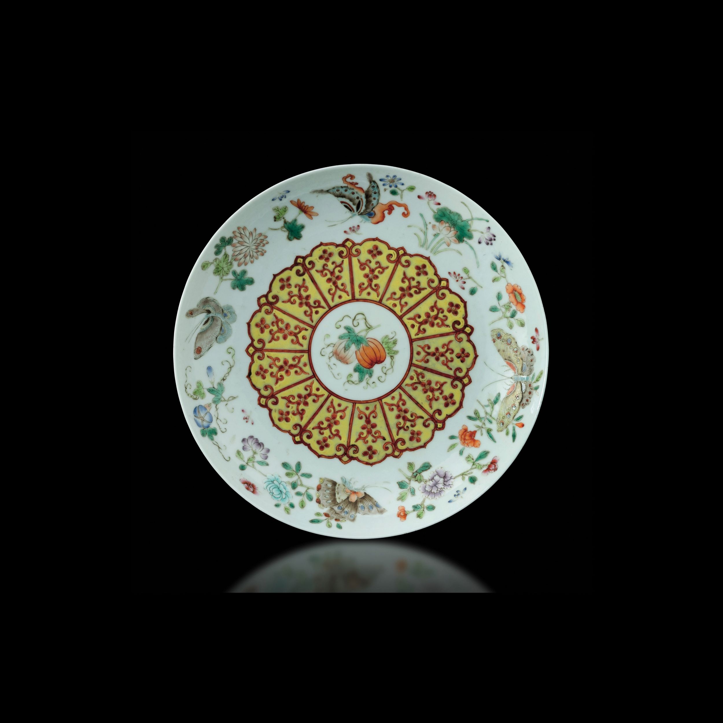 Piatto in porcellana a decoro floreale Famiglia Rosa, Cina, Dinastia Qing, epoca [..]