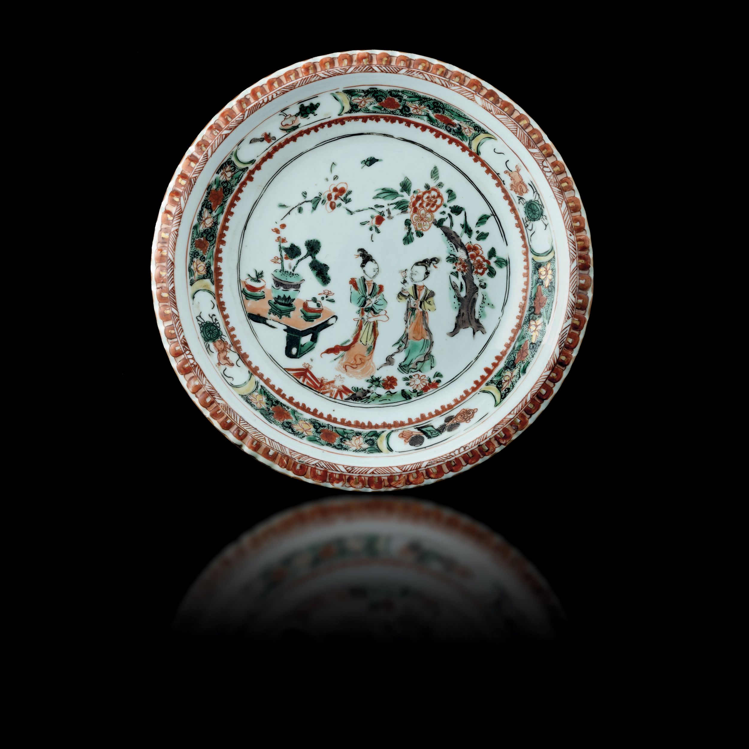 Piatto in porcellana con dame, Famiglia Verde, Cina, Dinastia Qing, epoca Kangxi [..]