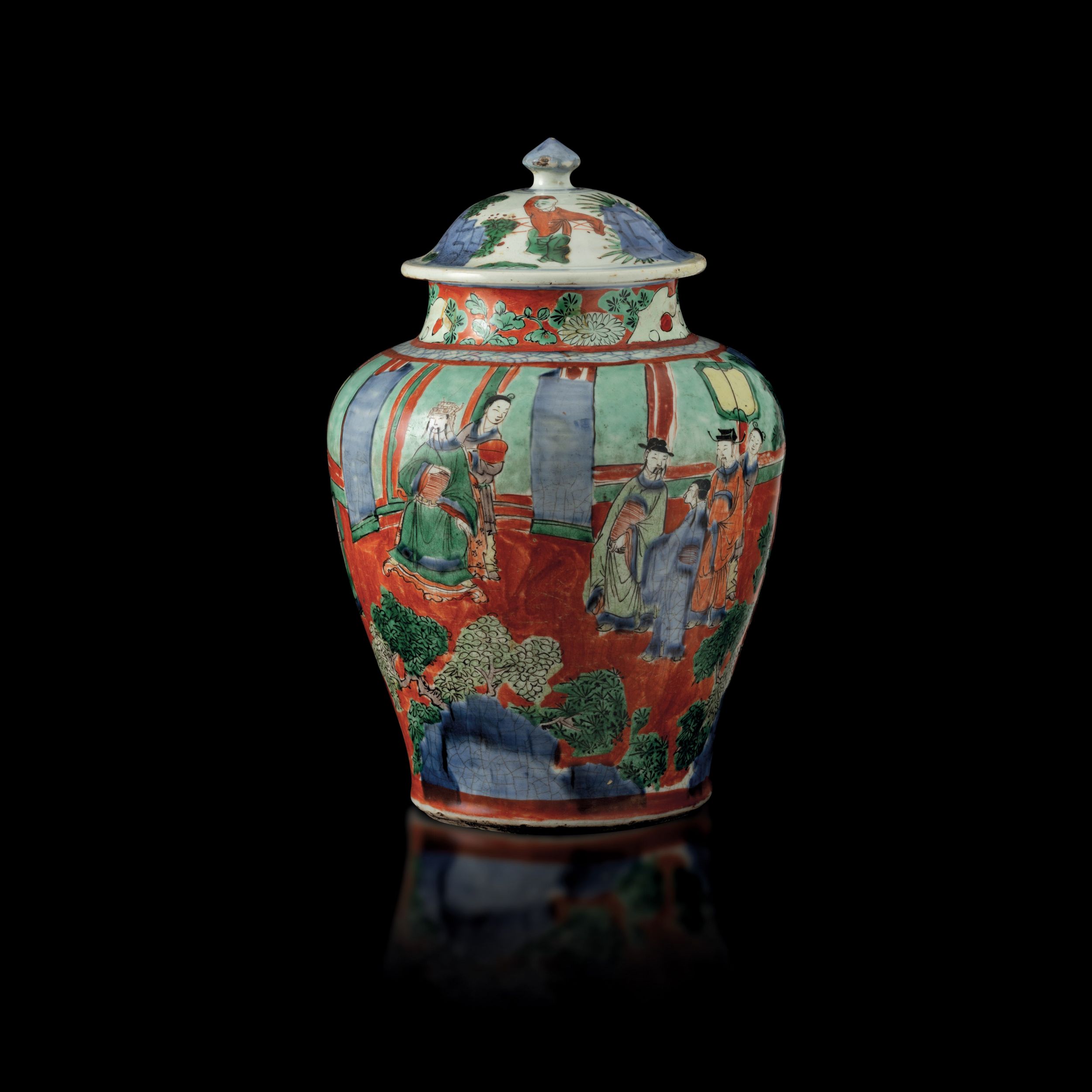 Potiche in porellana a fondo rosso con scene di vita comune, Cina, Dinastia Qing, [..]