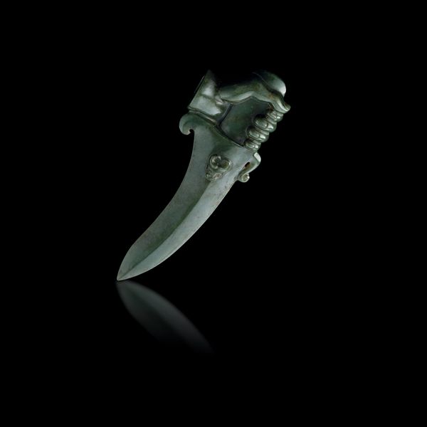 Pugnale in giada verde spinacio, Cina, Repubblica, inizio XX secolo