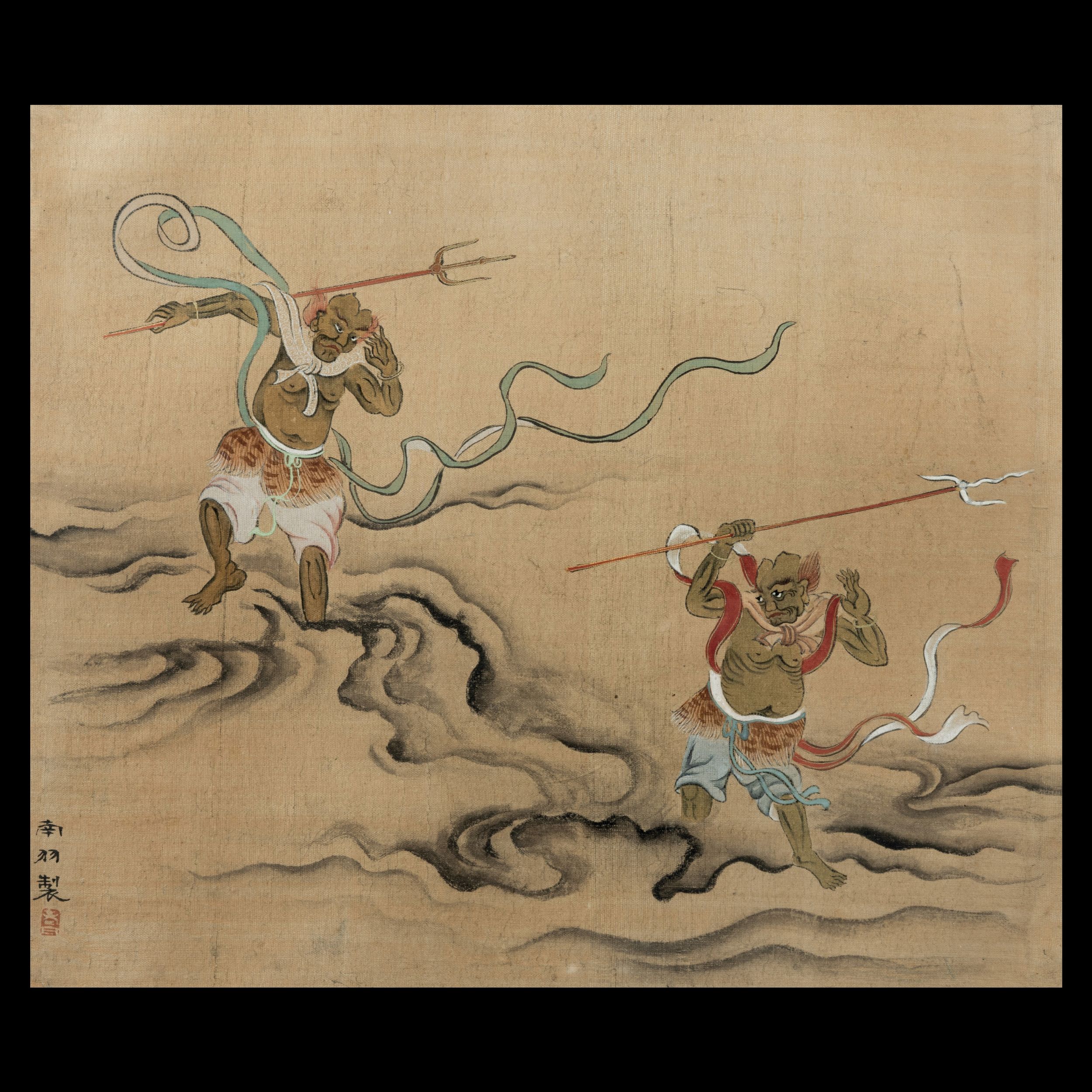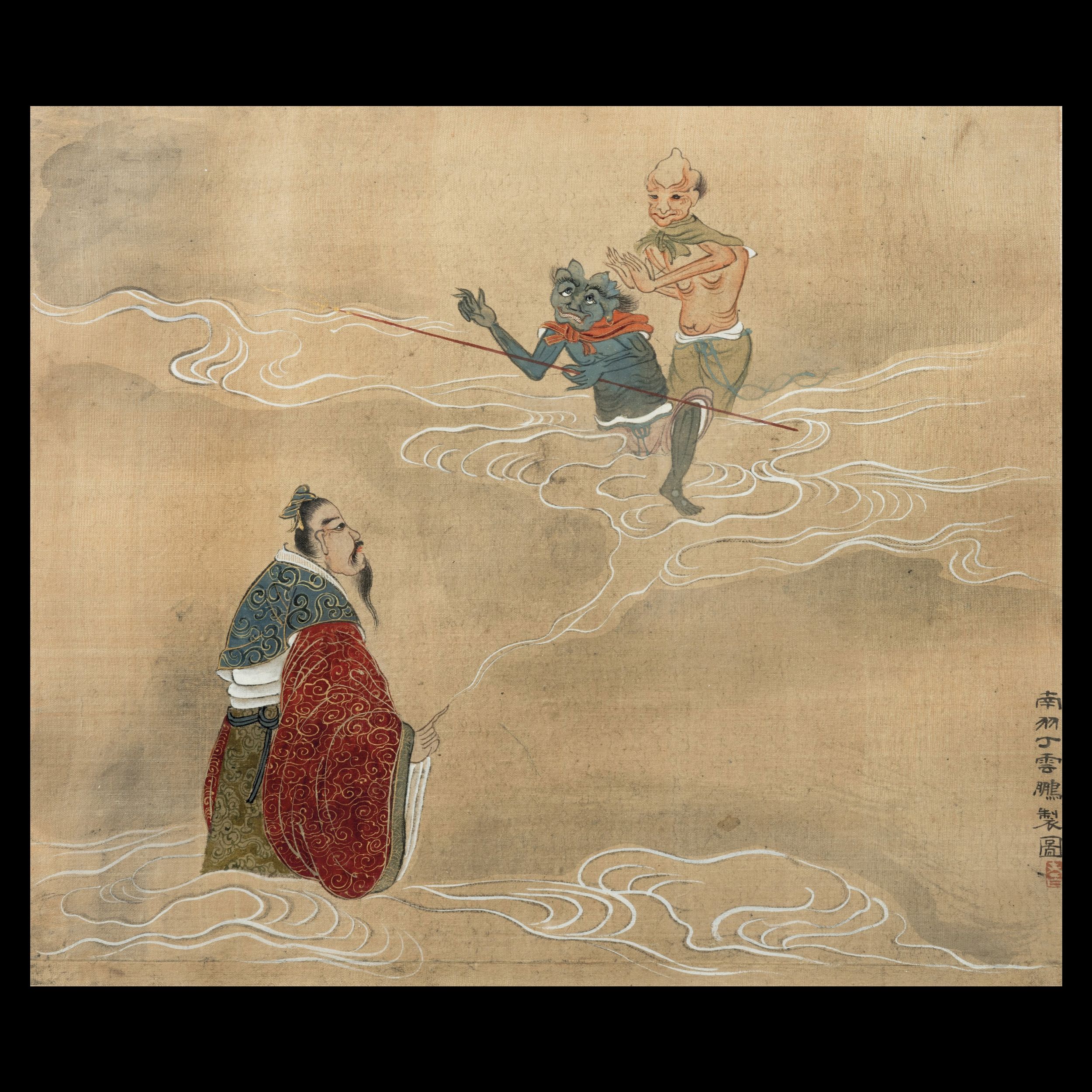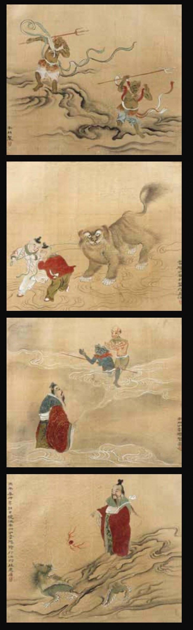 Quattro dipinti su seta con iscrizione, firmato 丁云鹏, Cina, Dinastia Qing, [..]