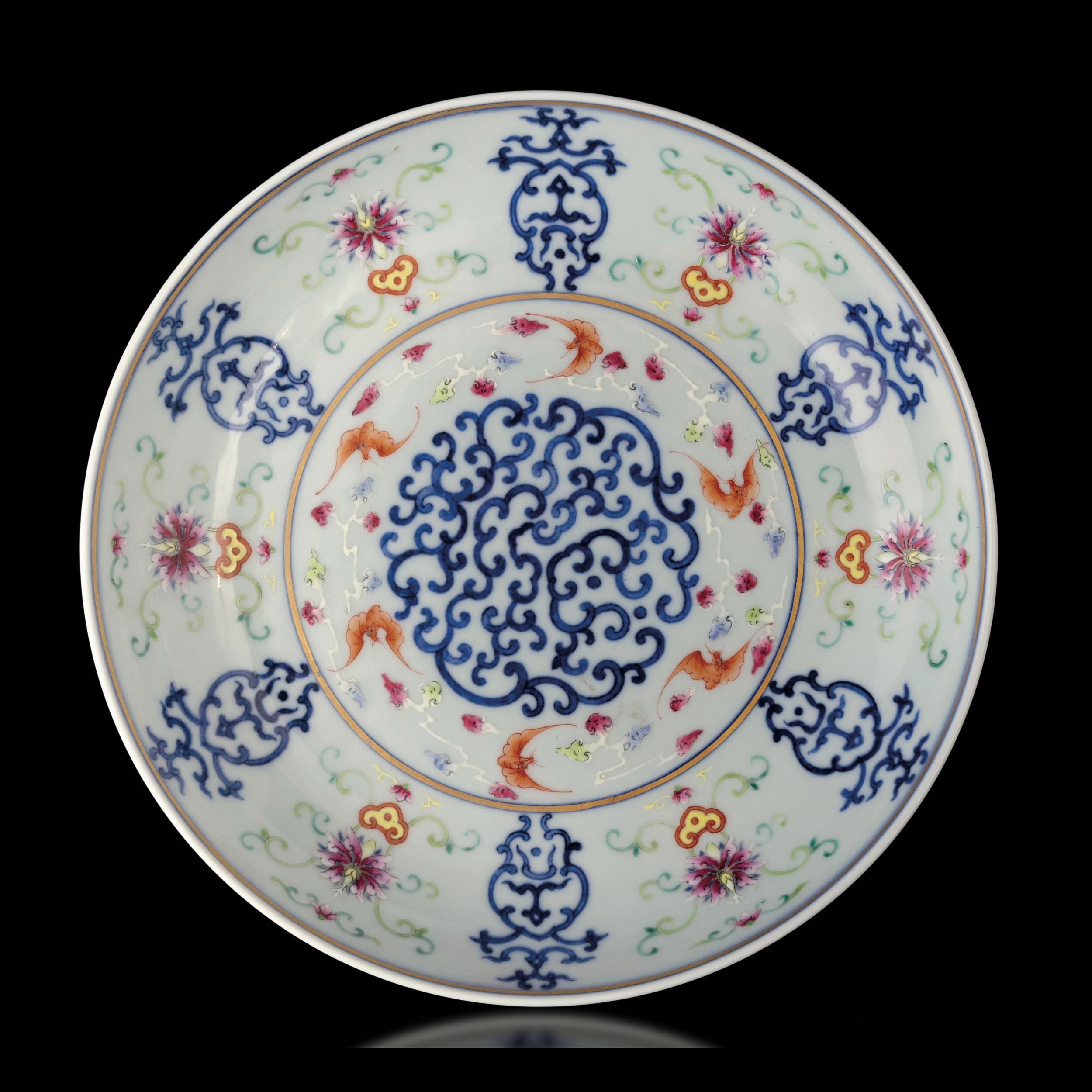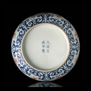 Raro piatto in porcellana Famiglia Rosa con decoro simmetrico, Cina, Dinastia Qing, [..]