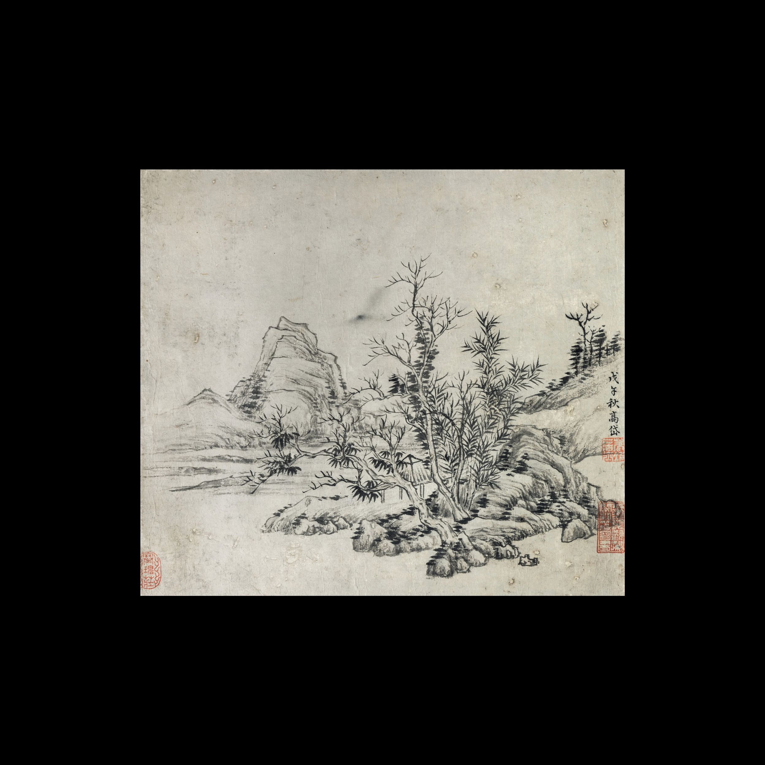 Scroll su carta a decoro di paesaggio e iscrizioni, firmato Gao Dai, Cina, XX se [..]