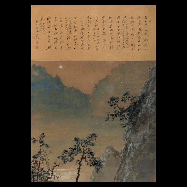 Scroll su carta a decoro di paesaggio e iscrizioni, Cina, XX secolo
