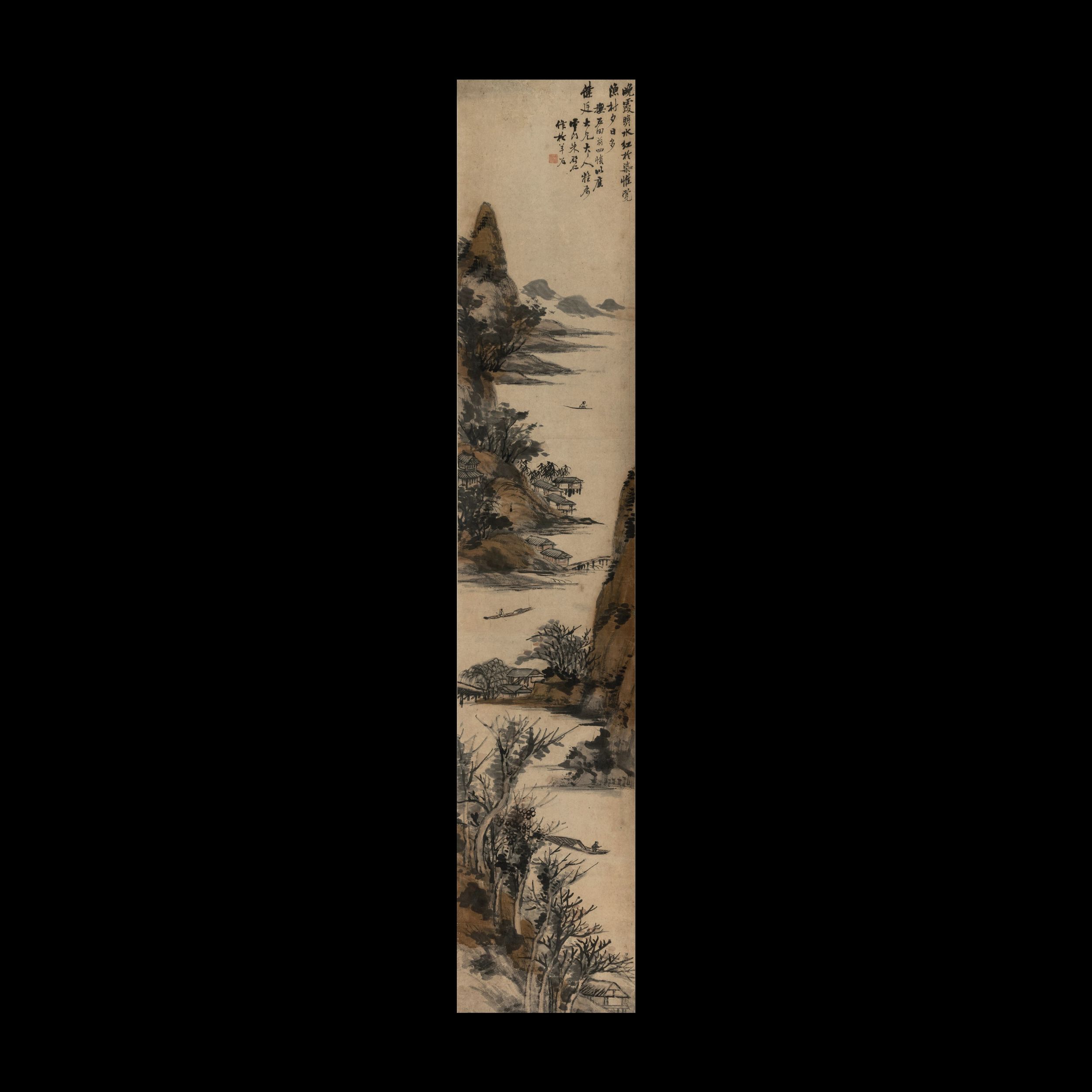 Scroll su carta con decoro di paesaggio e iscrizioni, Cina, Dinastia Qing, XIX s [..]