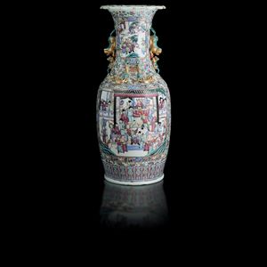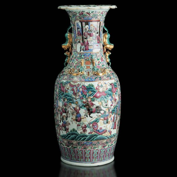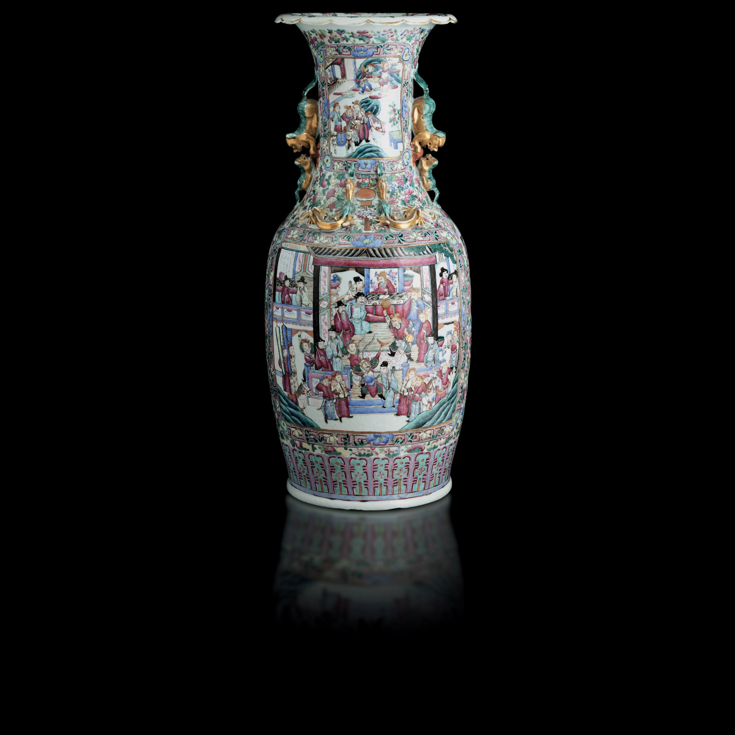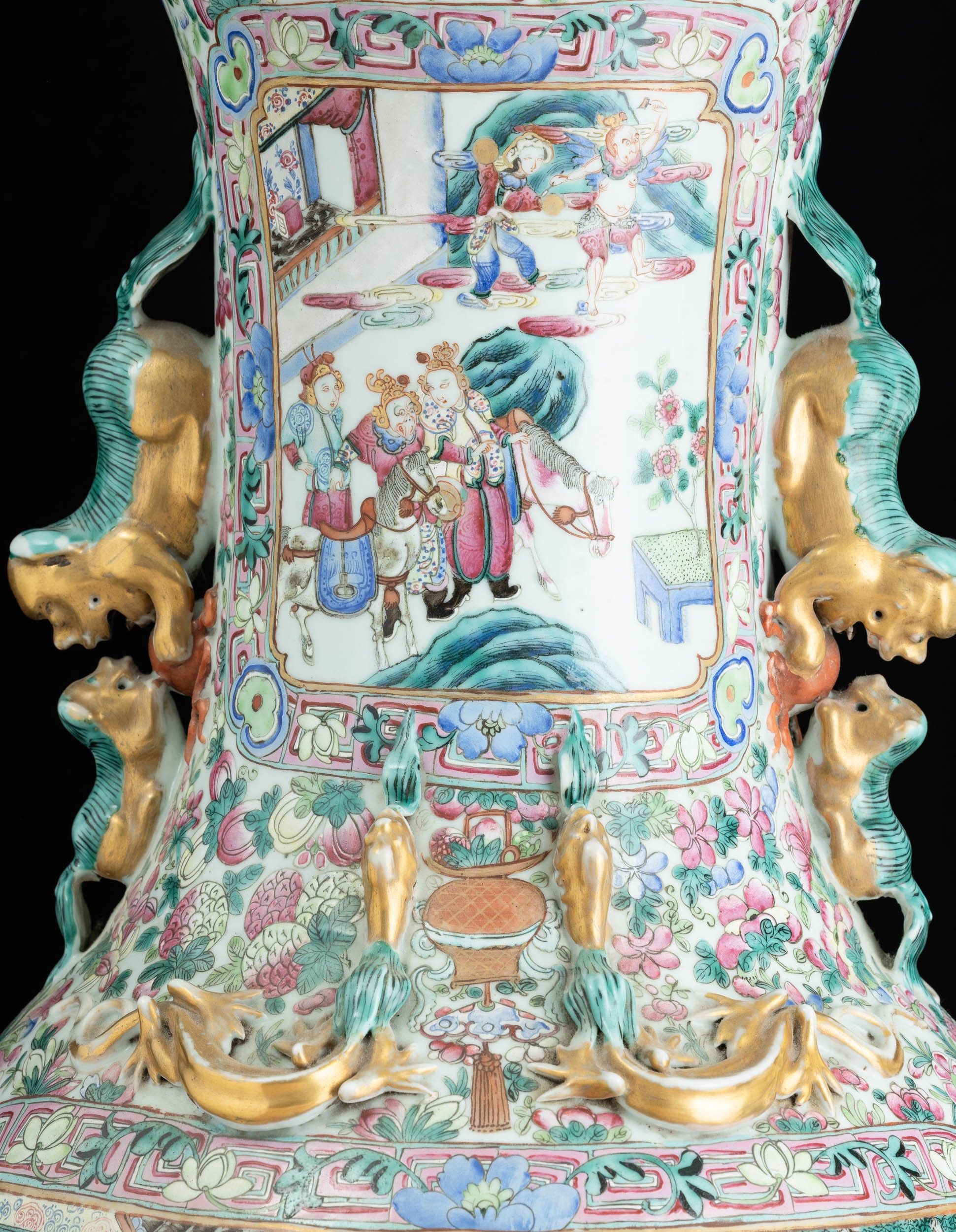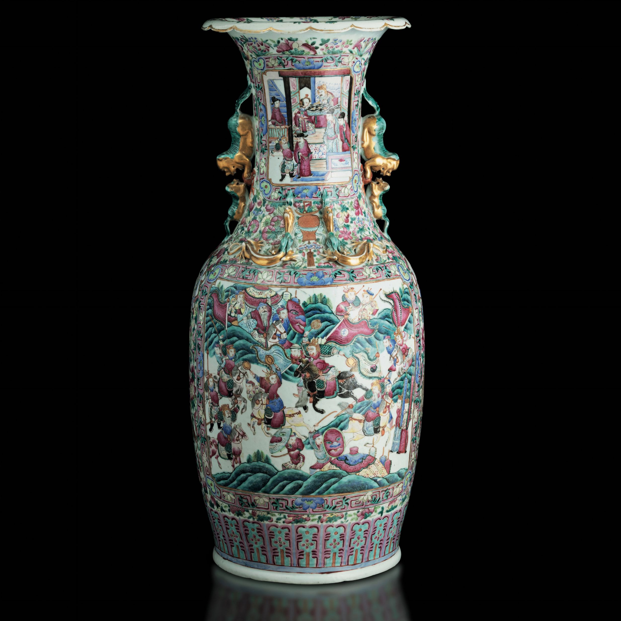 Vaso a balaustro in porcellana Famiglia Rosa con figure di draghetti a rilievo, [..]