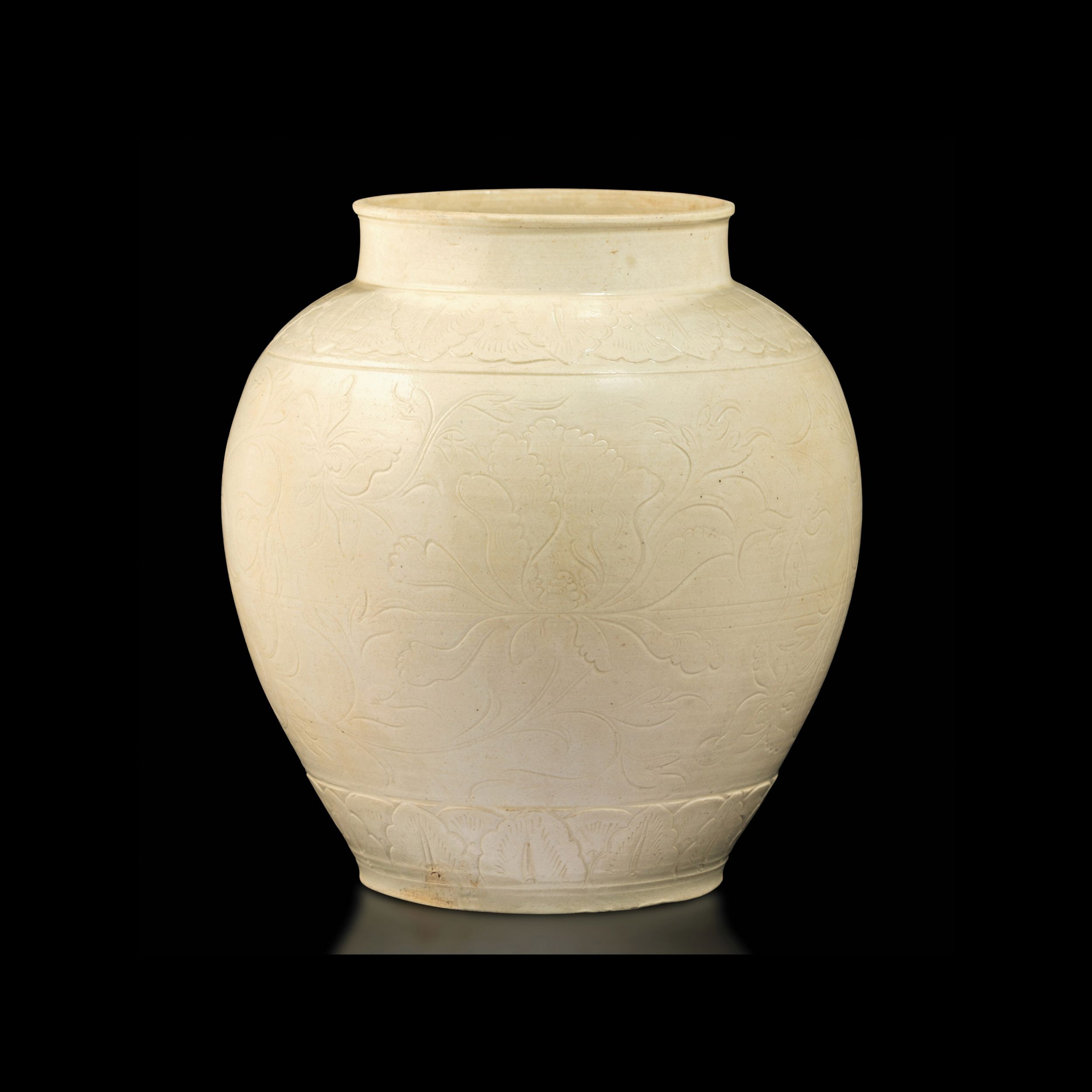 Vaso in porcellana monocroma ding a decoro floreale inciso, Cina, Dinastia Song, [..]