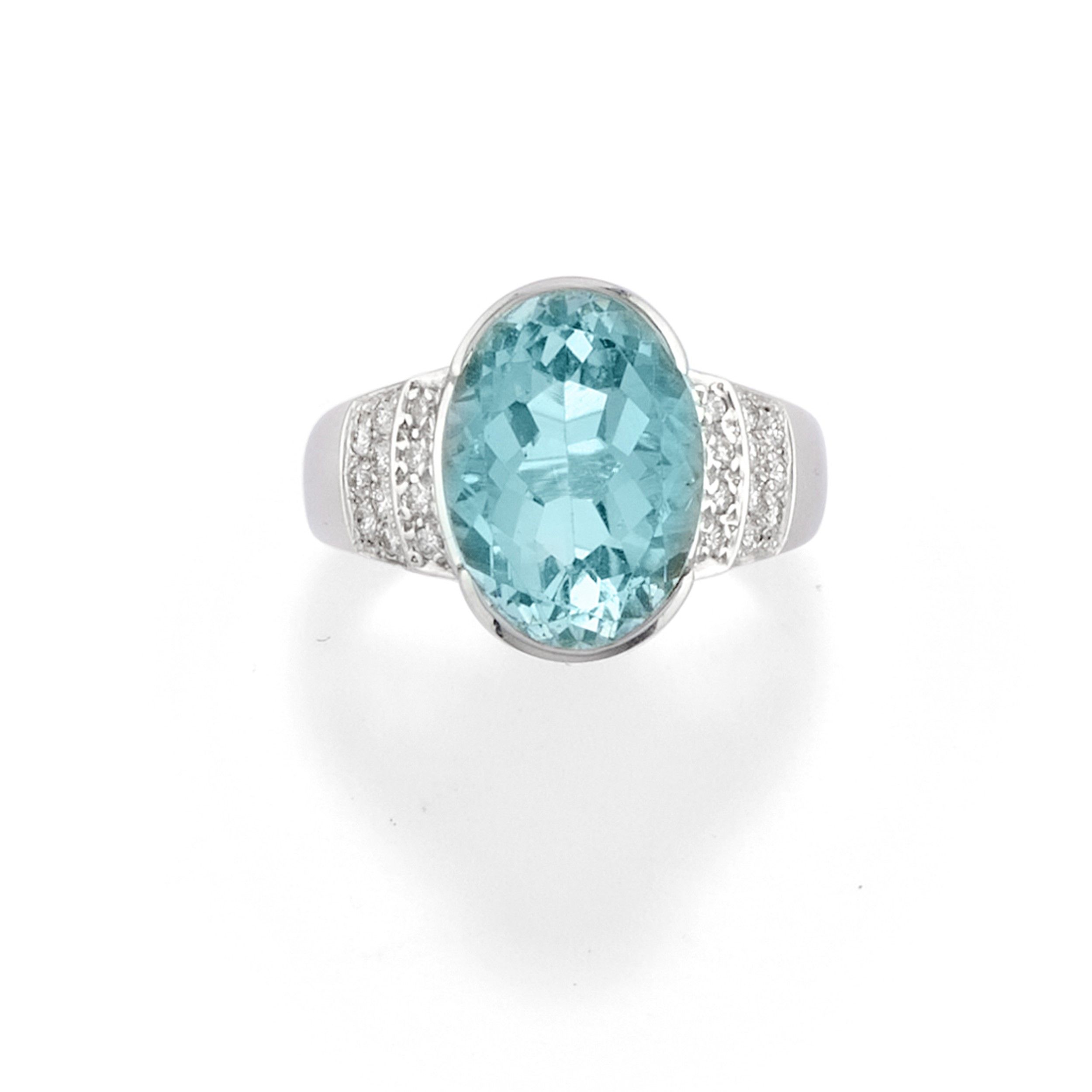 con al centro acquamarina taglio ovale di ct 6,50 circa e diamanti taglio brillante per totale ct 2,25 circa.