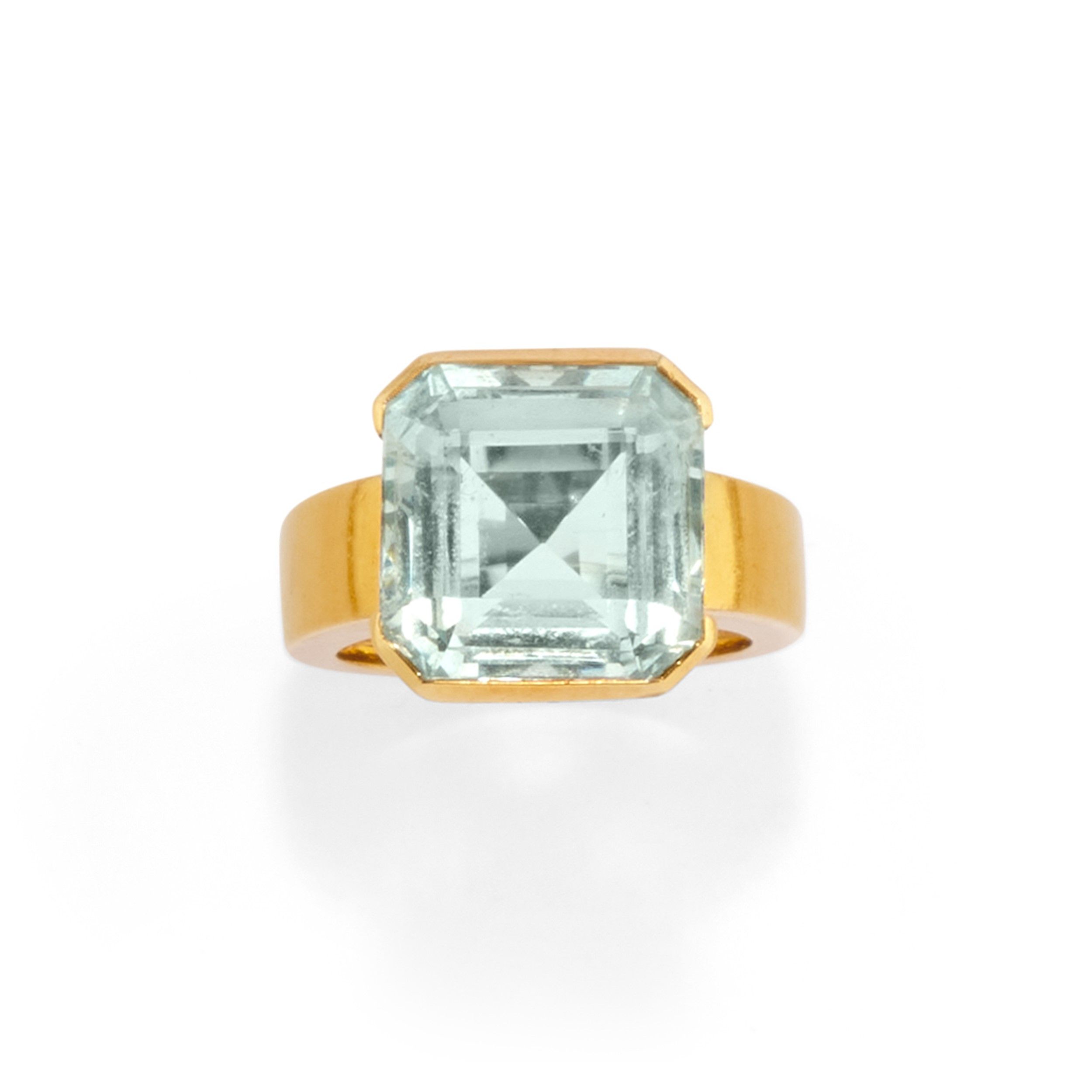 al centro acquamarina taglio quadrangolare contorno ottagonale di ct 10,00 circa.