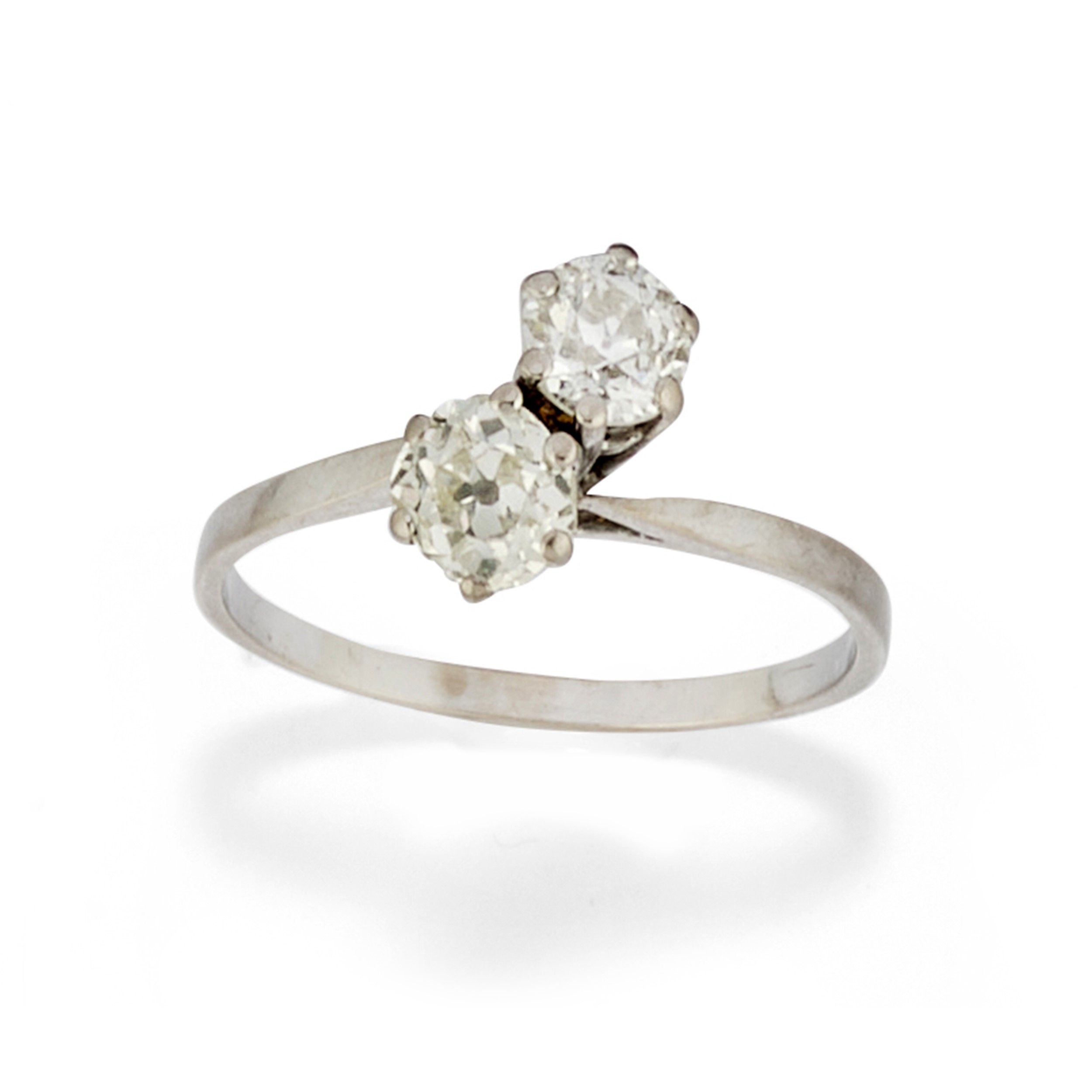 a contrarié con due diamanti taglio vecchio per totale ct 1,00 circa, prob. colore J/K, purezza SI.