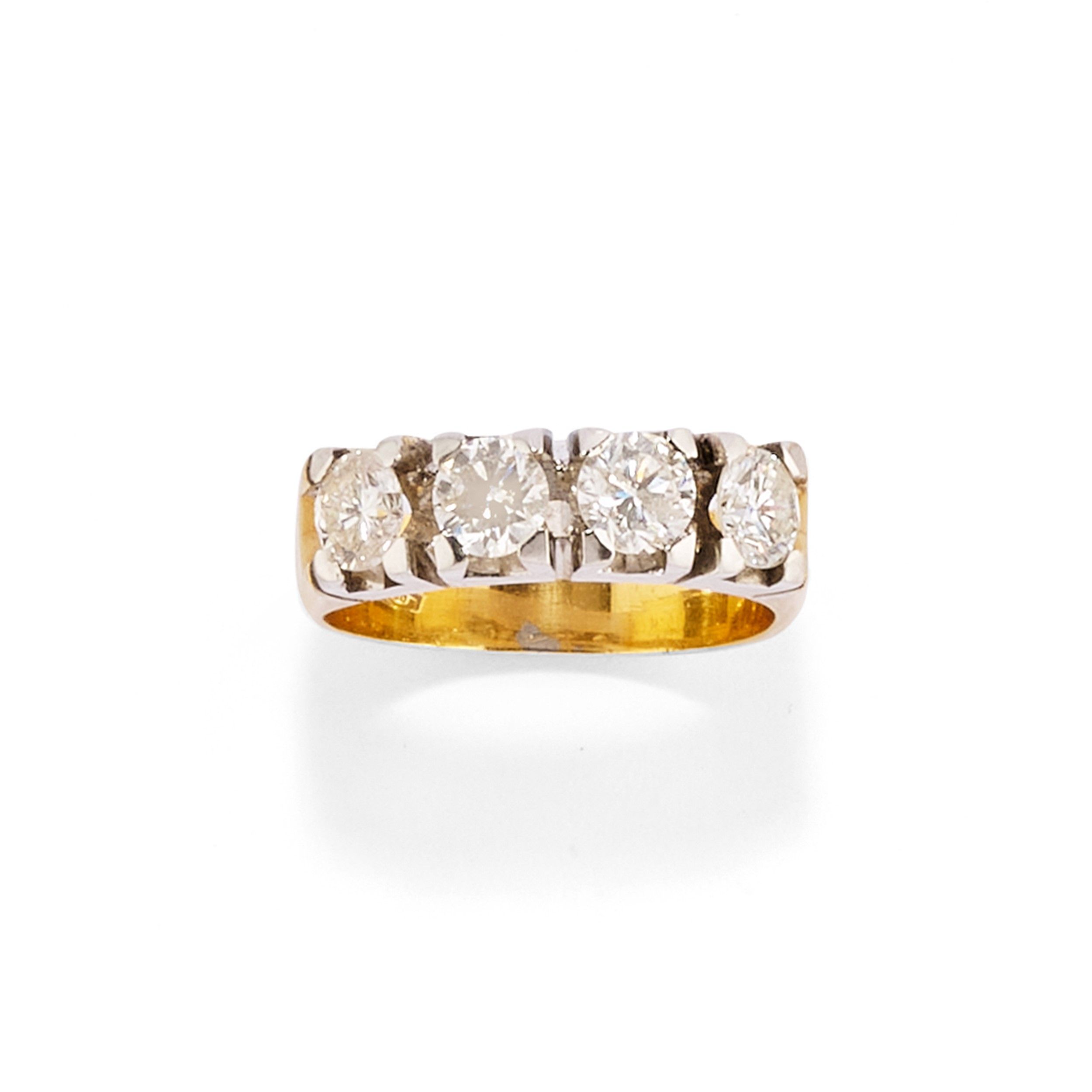 al centro quattro diamanti taglio brillante per totale ct 1,40 circa, prob. colore K/L, purezza P.