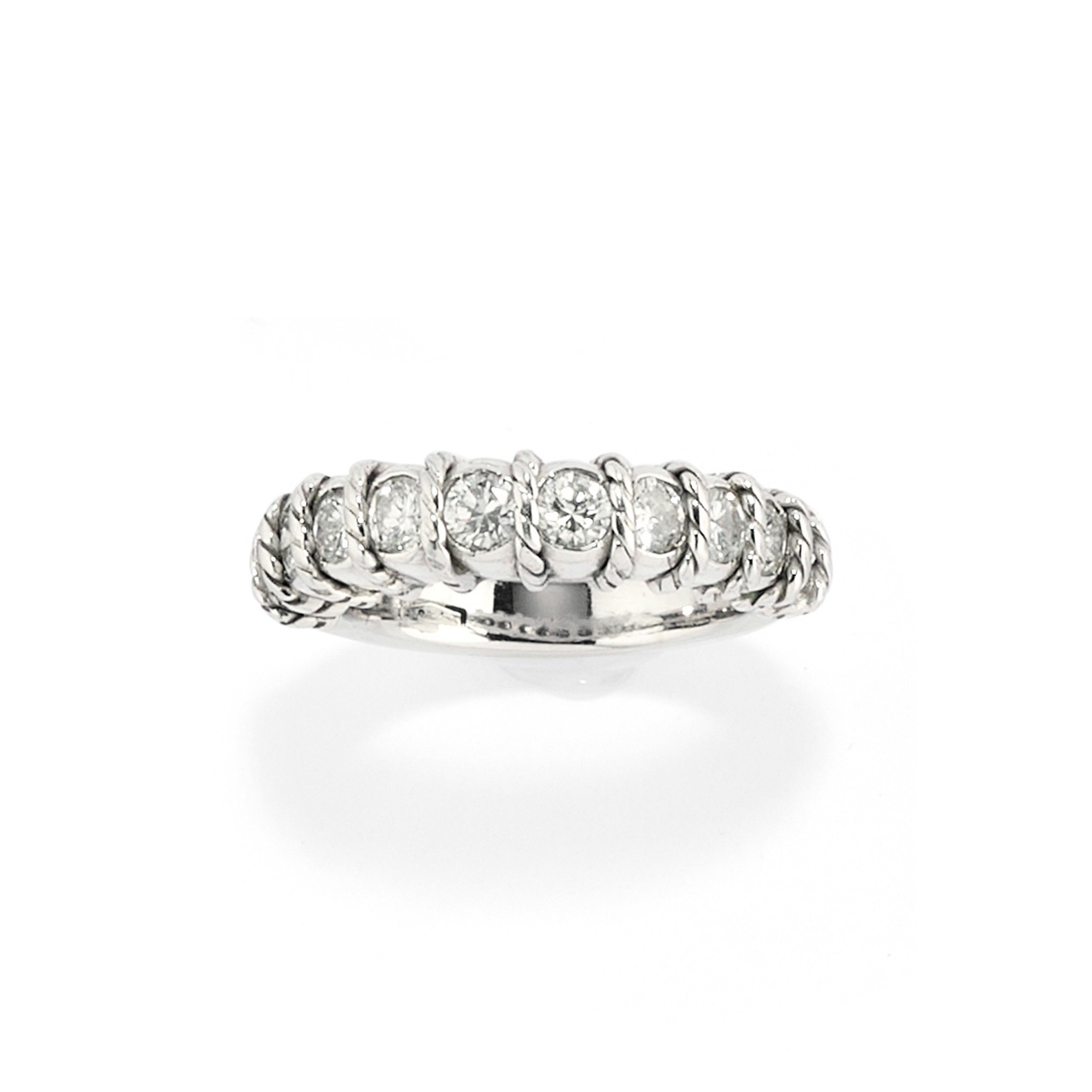 a mezzo giro di diamanti taglio brillante per totale ct 1,00 circa.