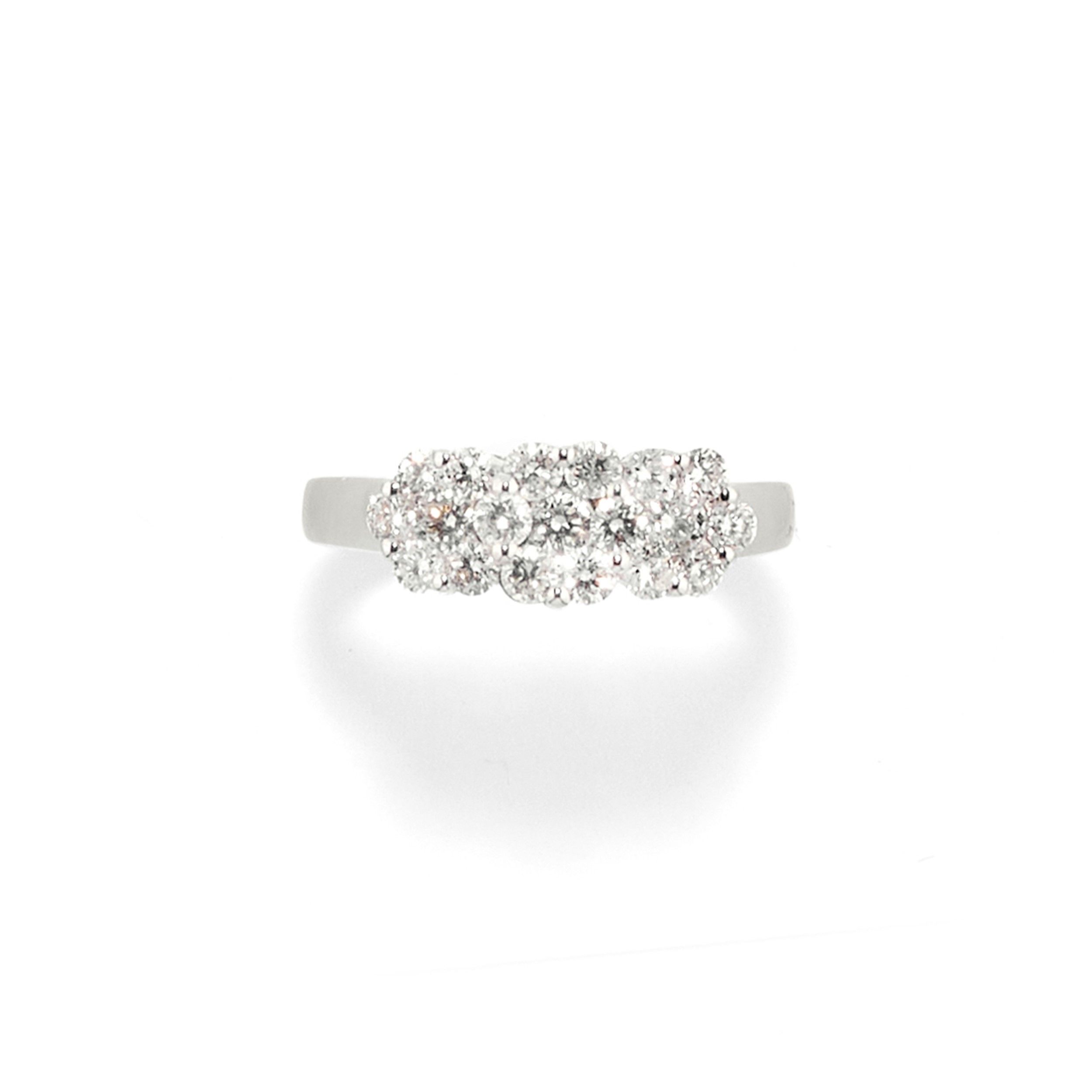con tre motivi a fiore in diamanti taglio brillante per totale ct 0,99 (caratura incisa).