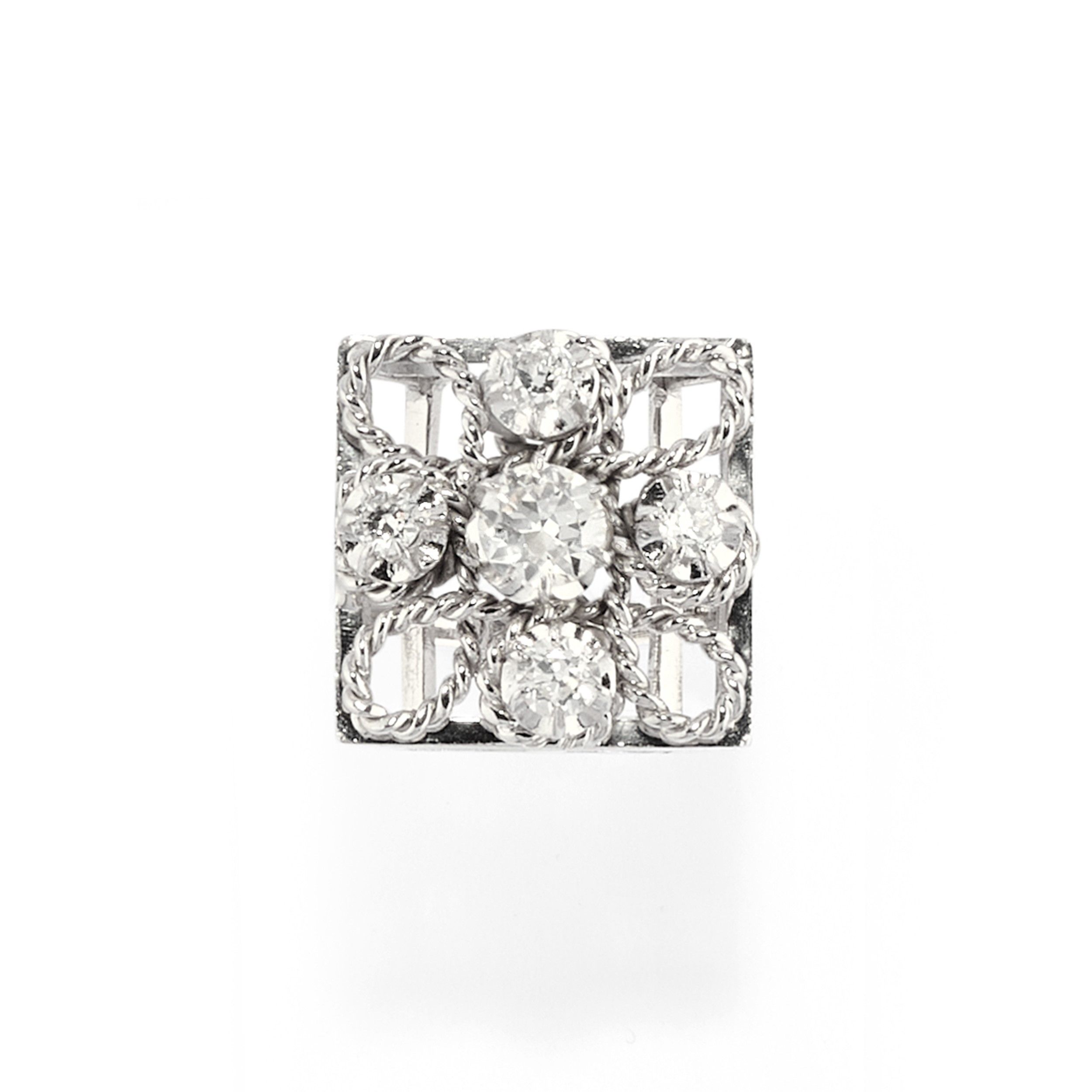 sommità quadrata, decorata in filo d'oro ritorto, quattro diamanti taglio vecchio per totale 1,50 circa.