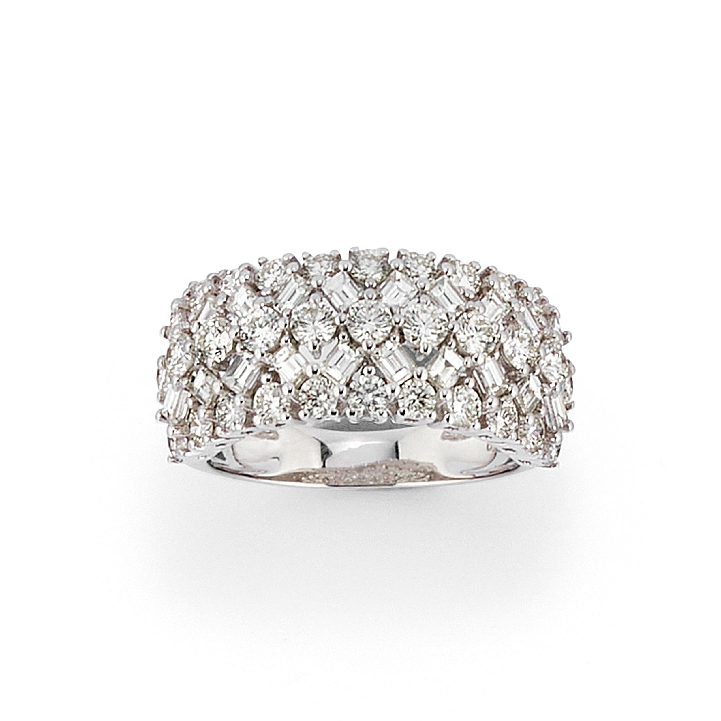 a fascia, realizzato con diamanti taglio brillante e baguette per totale ct 3,00 circa.