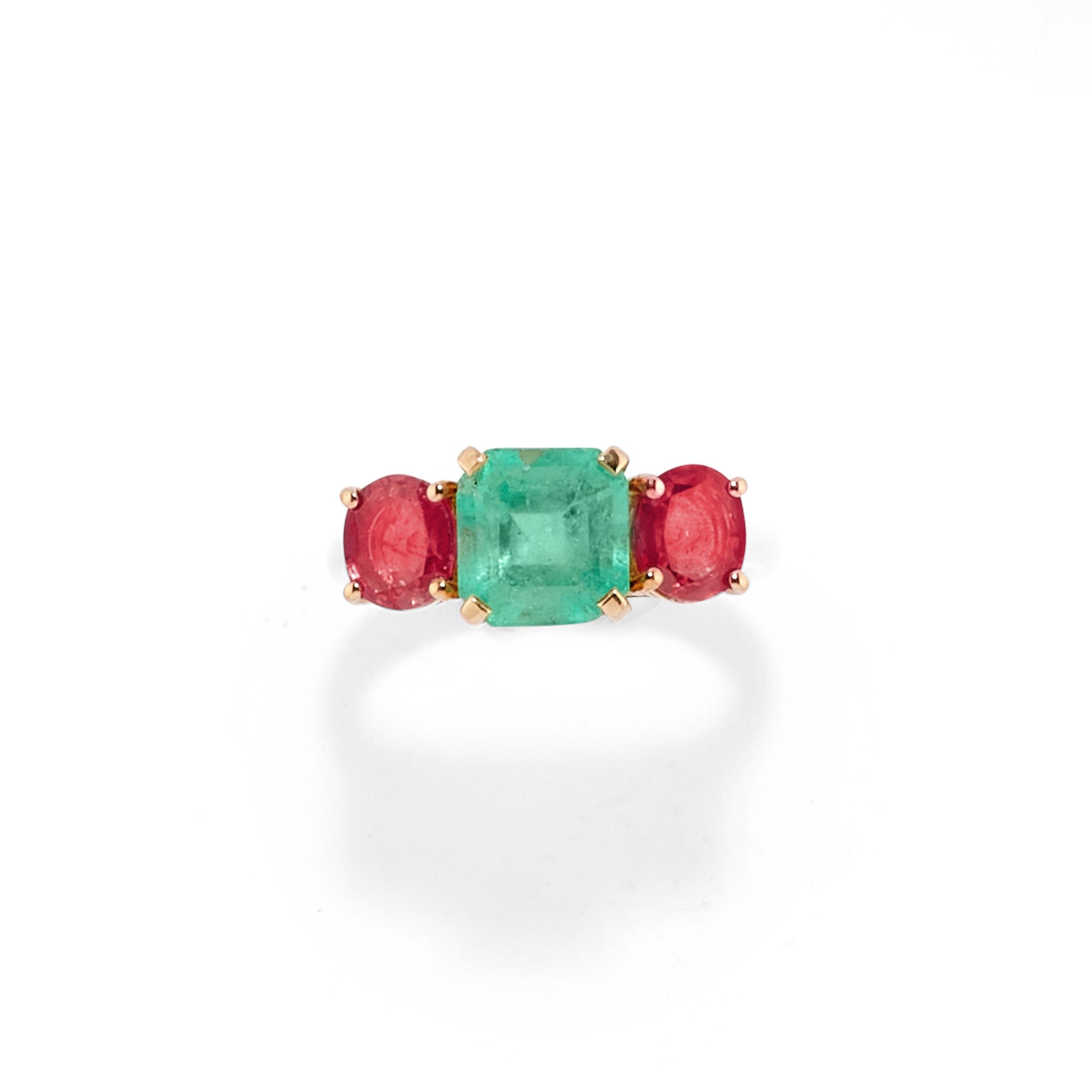 Anello con smeraldo e rubini  - Asta Gioielli - Associazione Nazionale - Case d'Asta italiane