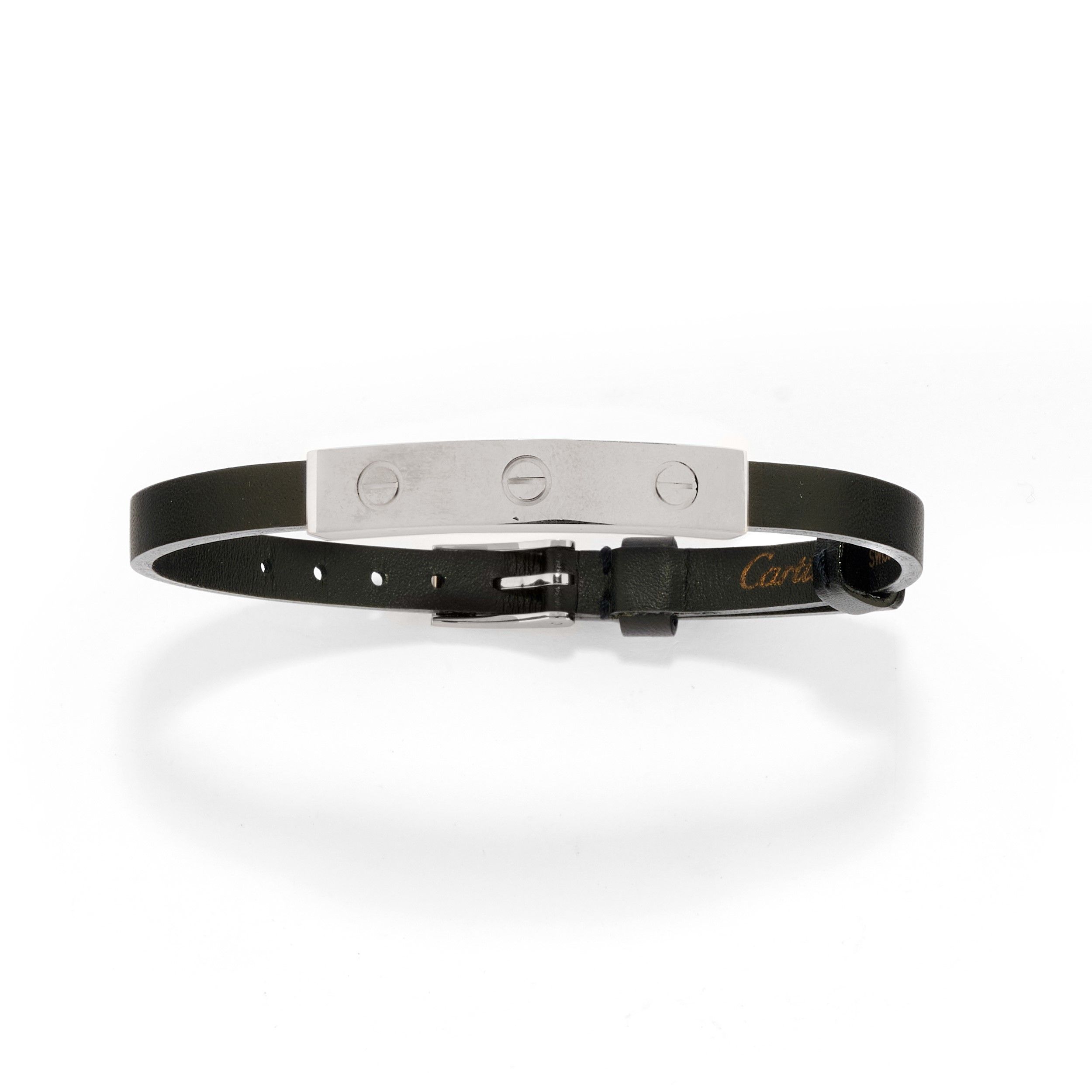 collezione Love, con cinturino in cuoio nero, firmato e numerato Cartier, con scatola.