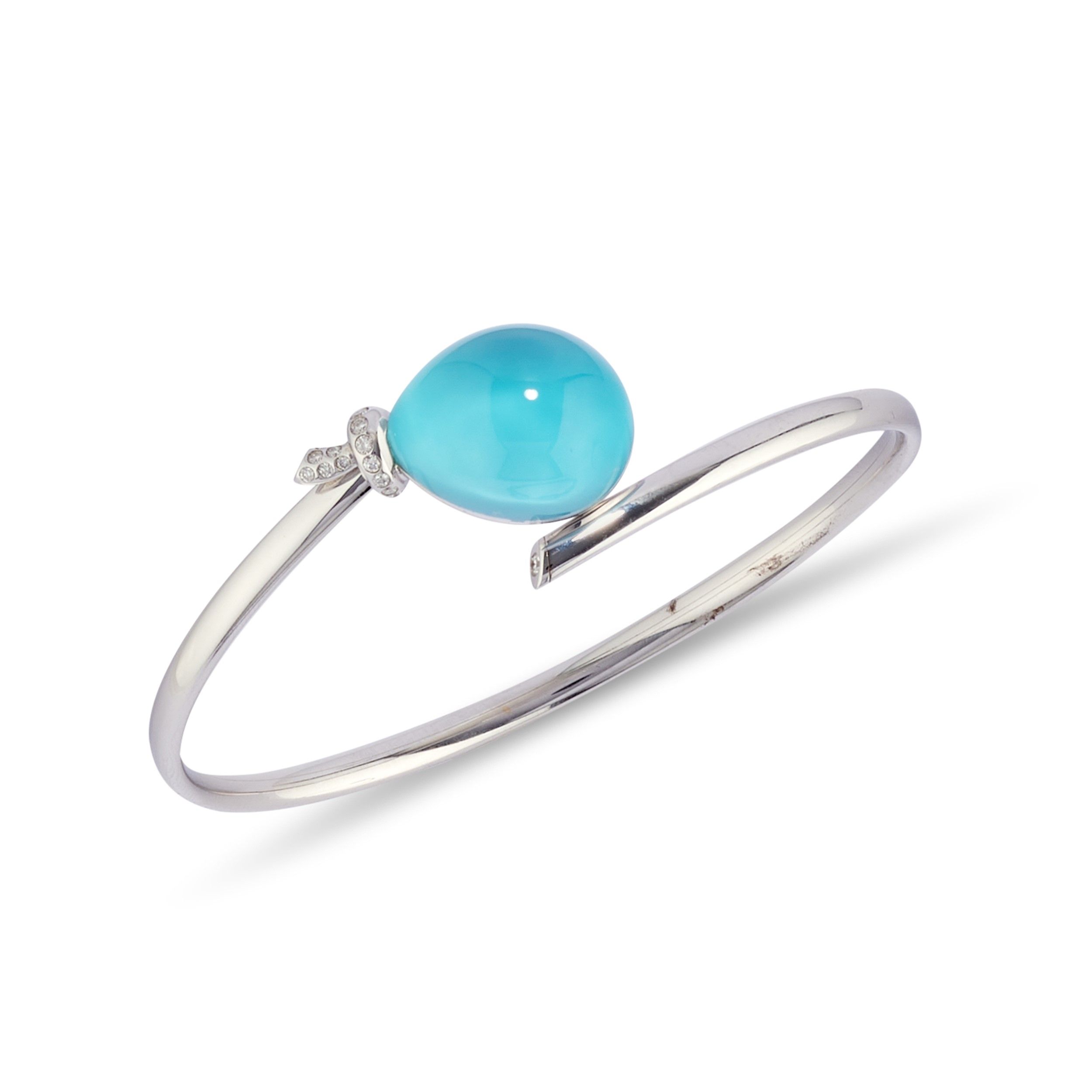 collezione Palloncino, rigido, con cristallo di rocca su fondo in turchese, piccoli diamanti taglio brillante a decoro, con astuccio.