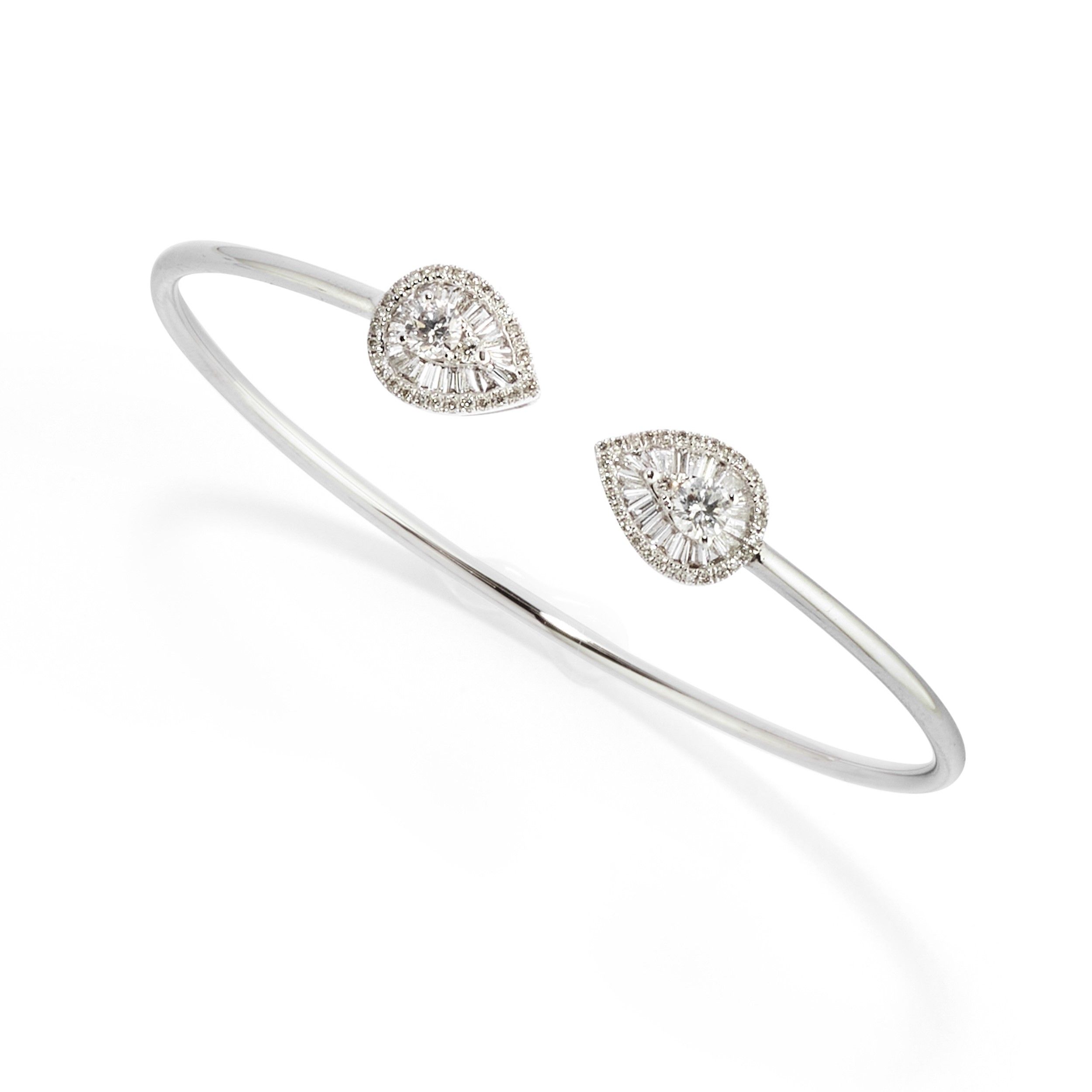 con terminali a goccia in diamanti taglio brillante e tapered baguette per totale ct 1,00 circa.