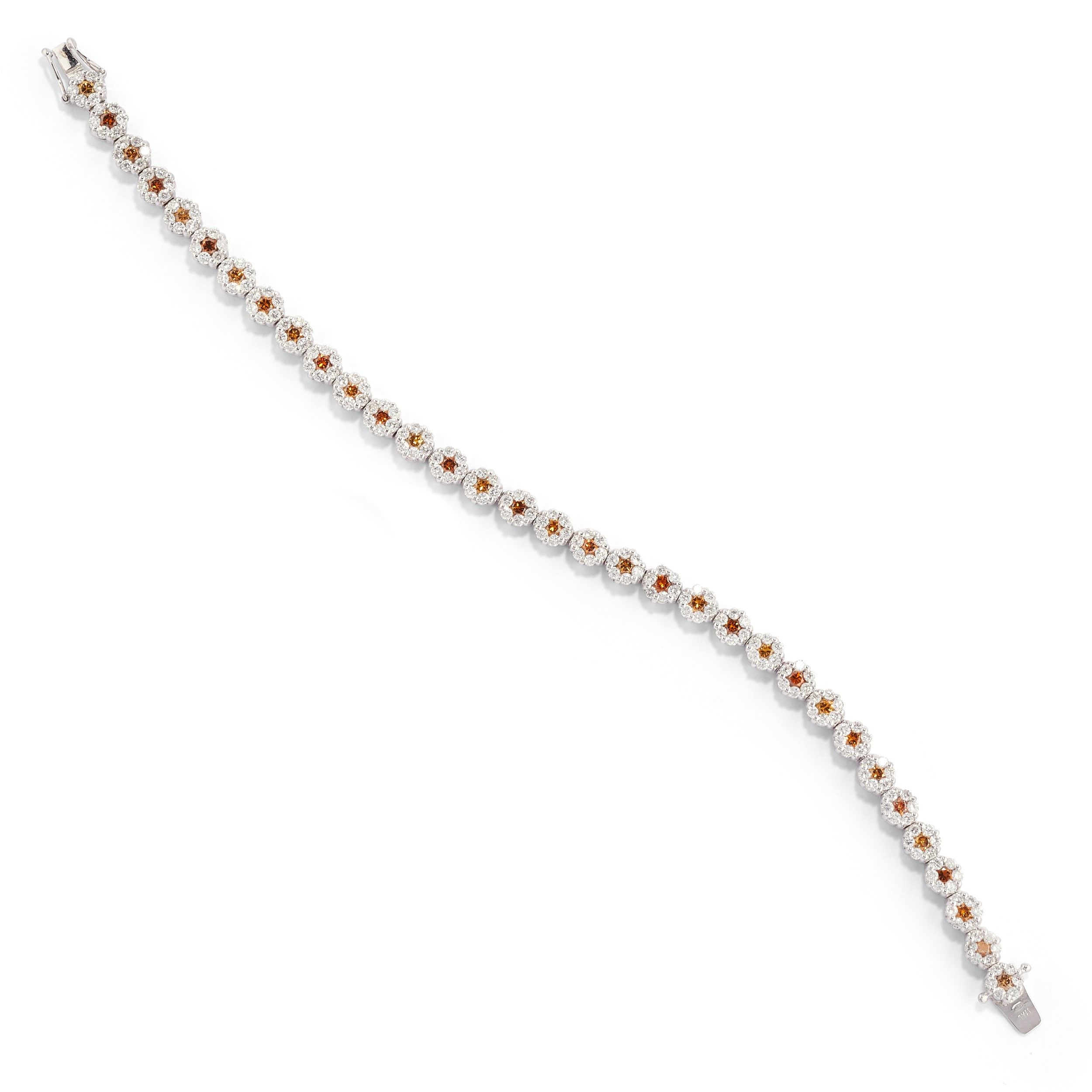 motivi a fiore con diamanti incolore e brown taglio brillante per totale ct 5,50 circa.