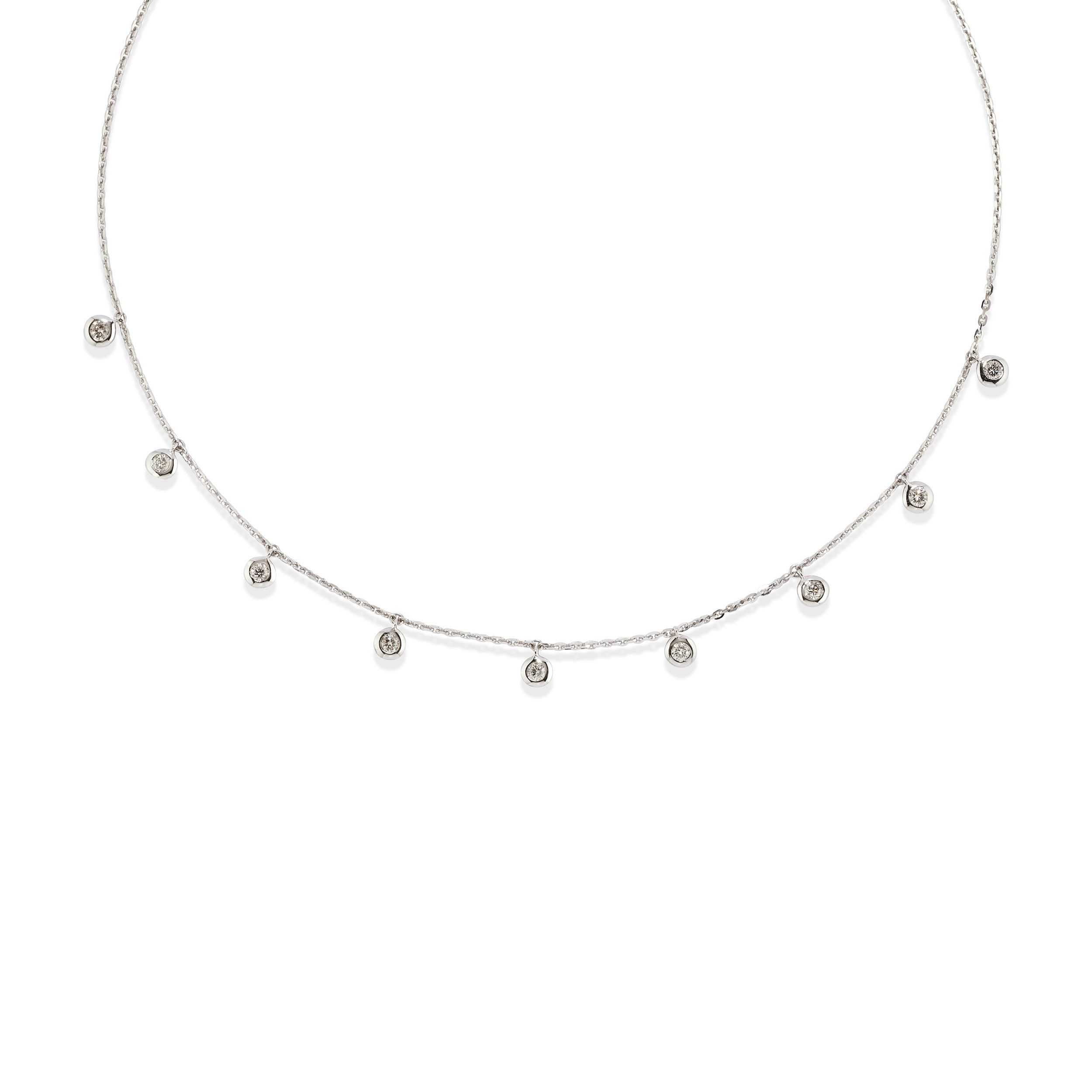 maglia ad anelli con castoni pendenti in diamanti taglio brillante per totale ct 0,60 circa.