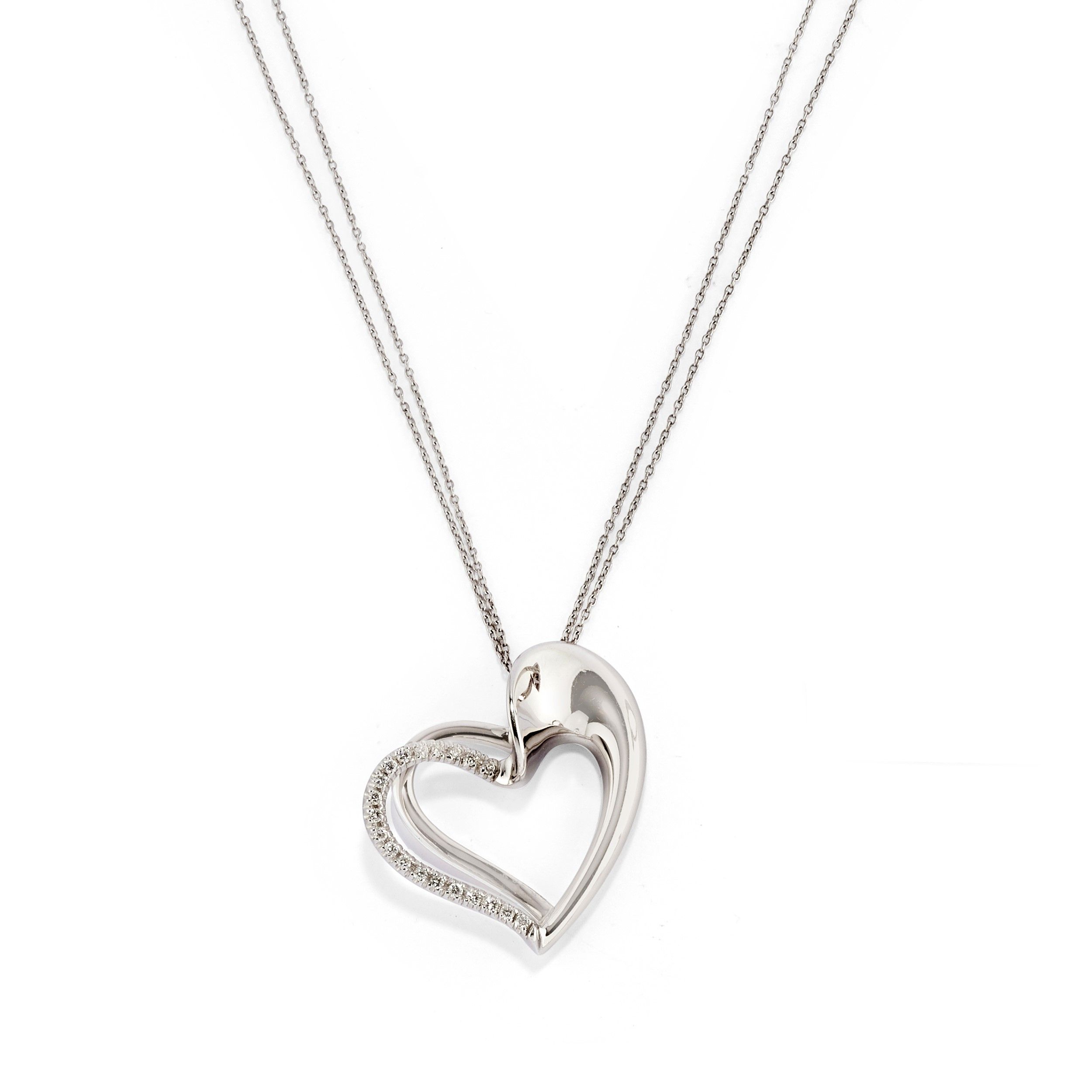 pendente centrale a cuore in diamanti taglio brillante per totale ct 0,50 circa, trattenuto da doppia catena roḷ.