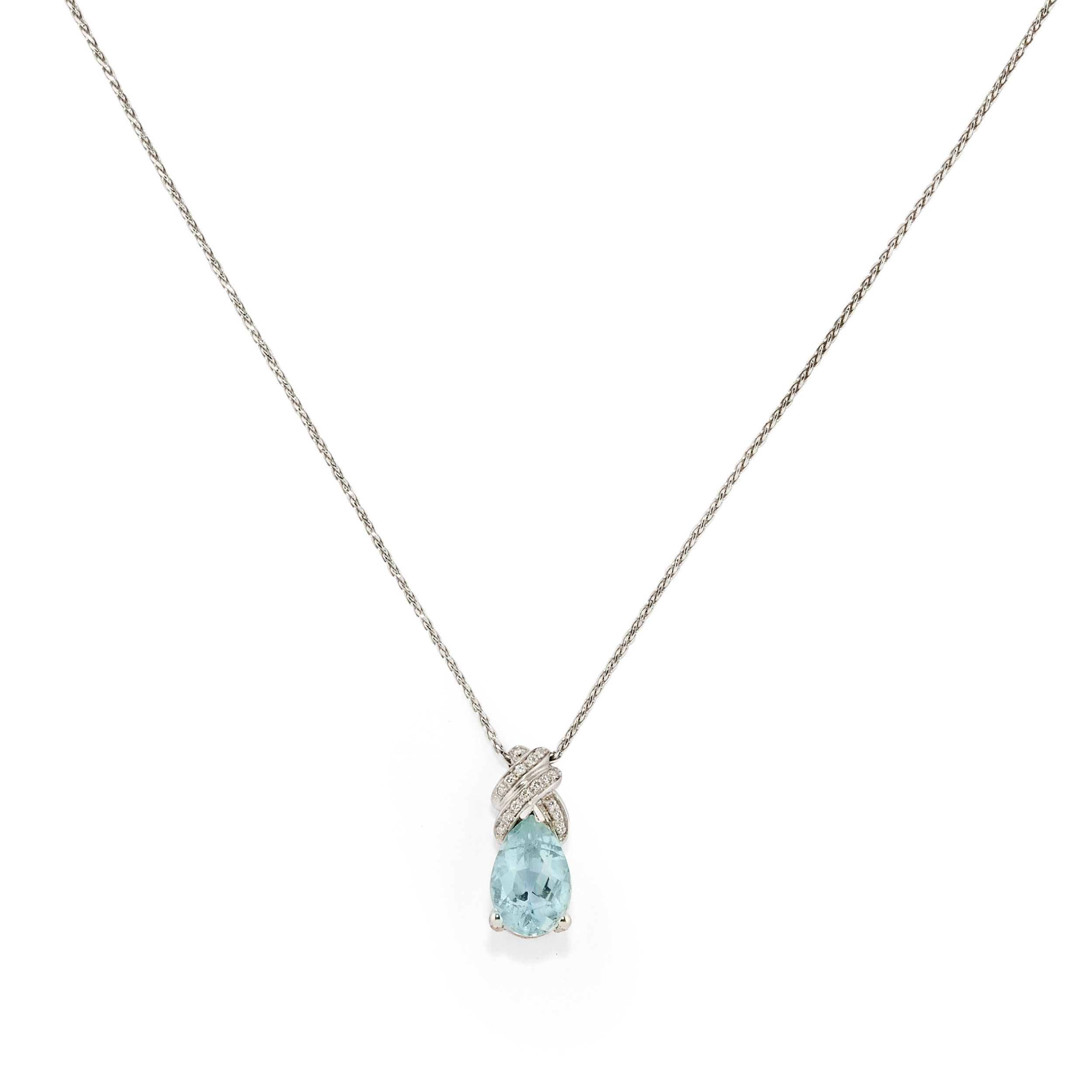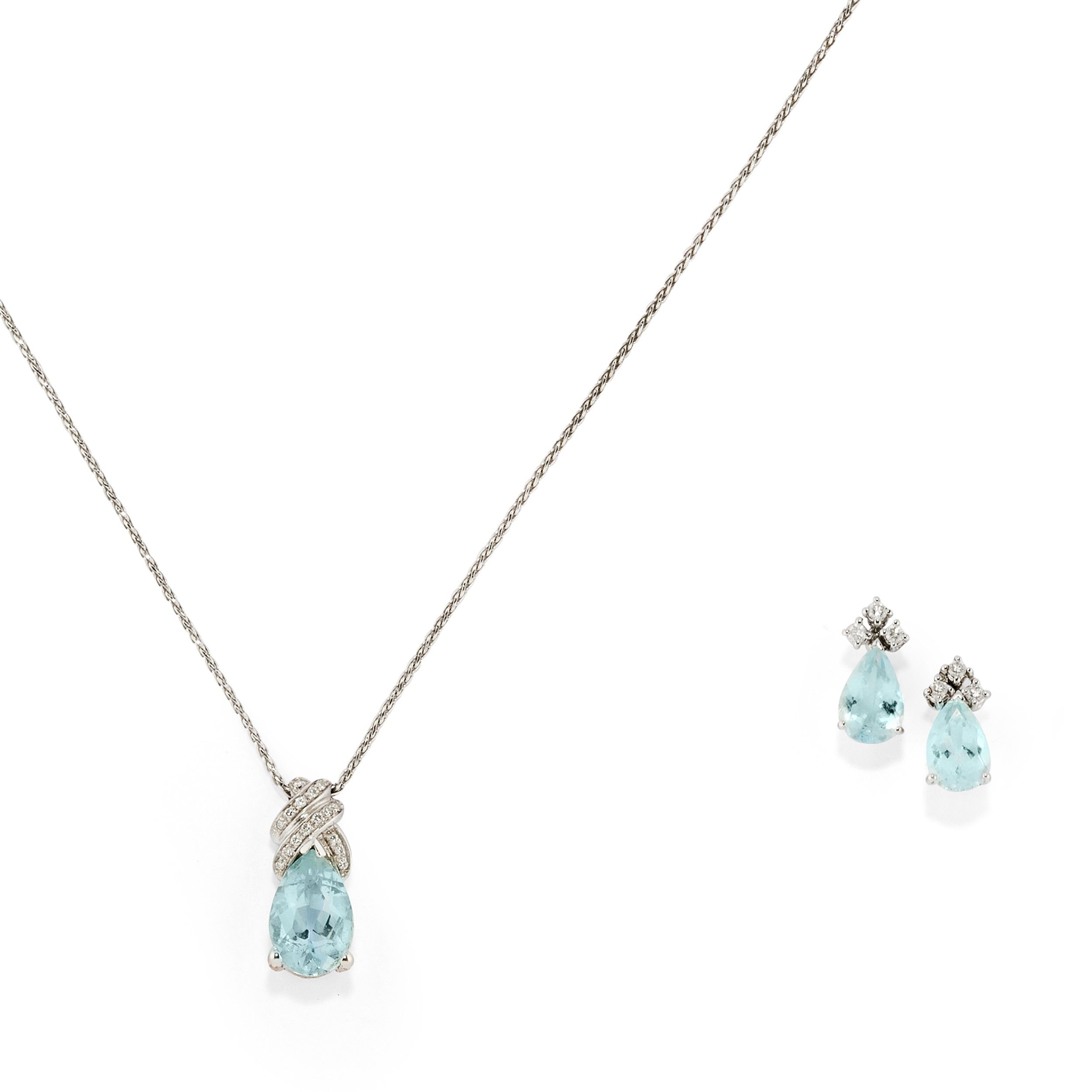 con acquamarine taglio goccia per totale ct 3,00 circa e piccoli diamanti taglio brillante, chiusura perno e farfalla.