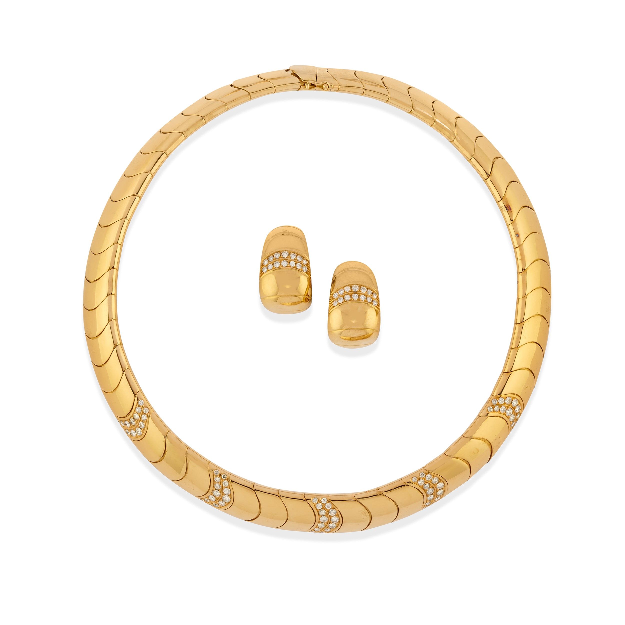 composta da girocollo e coppia di orecchini con chiusura a clip, diamanti taglio brillante per totale ct 3,00 circa.