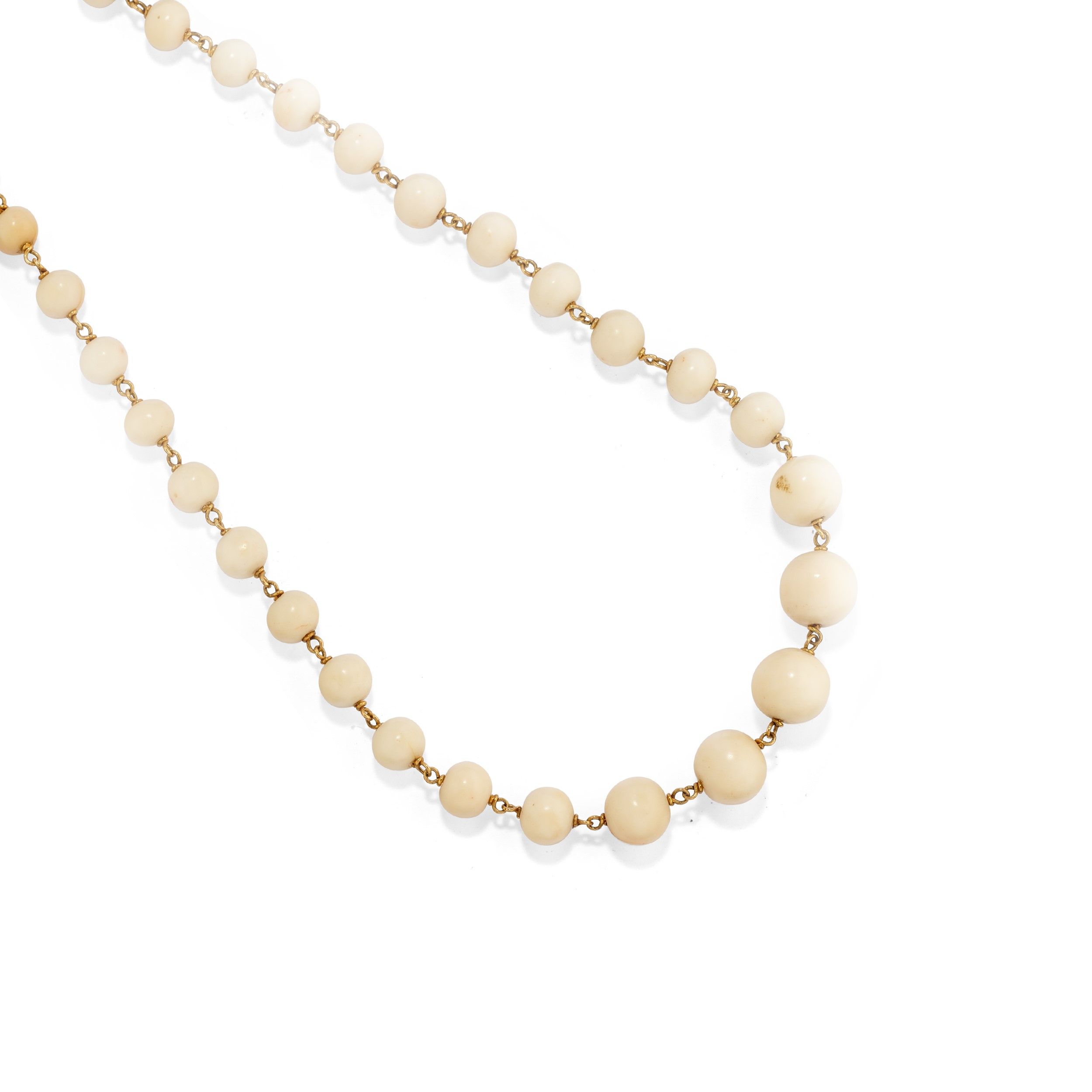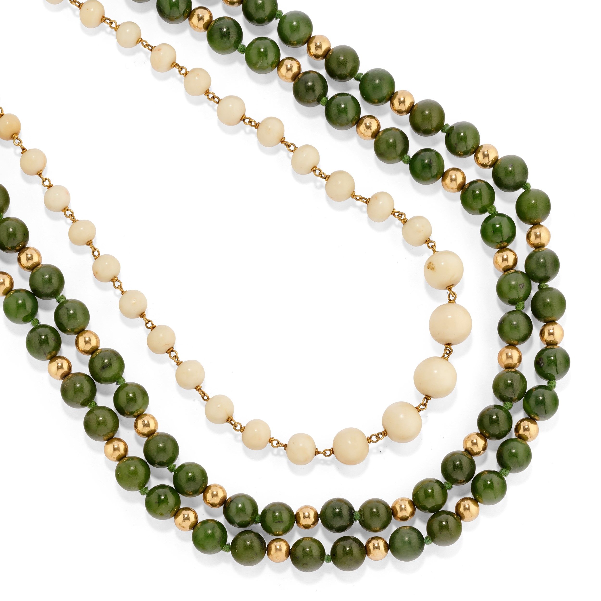 una realizzata con boules di corallo bianco disposte a degradé dal centro di mm 12,00/5,00 circa; una con boules in giada nefrite.