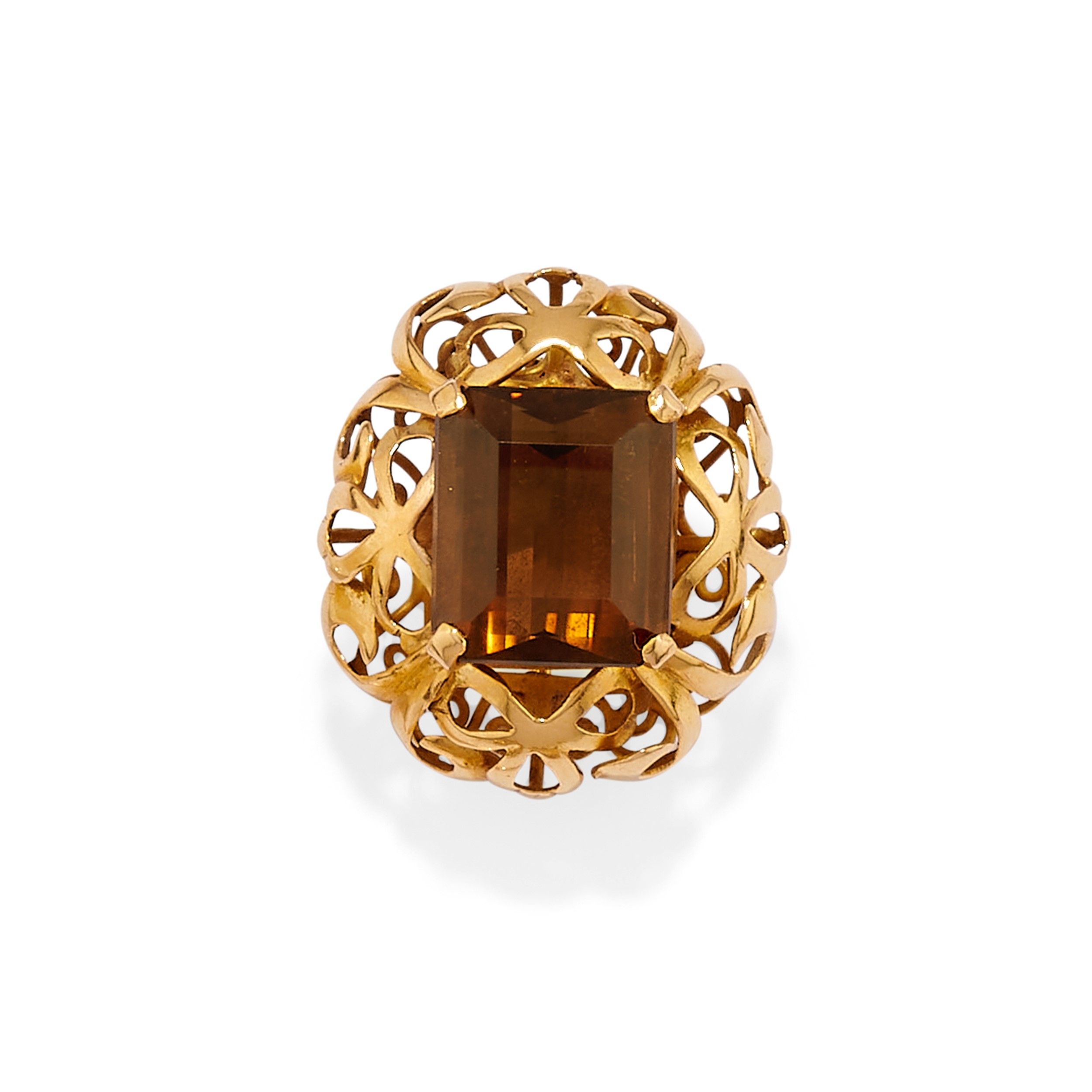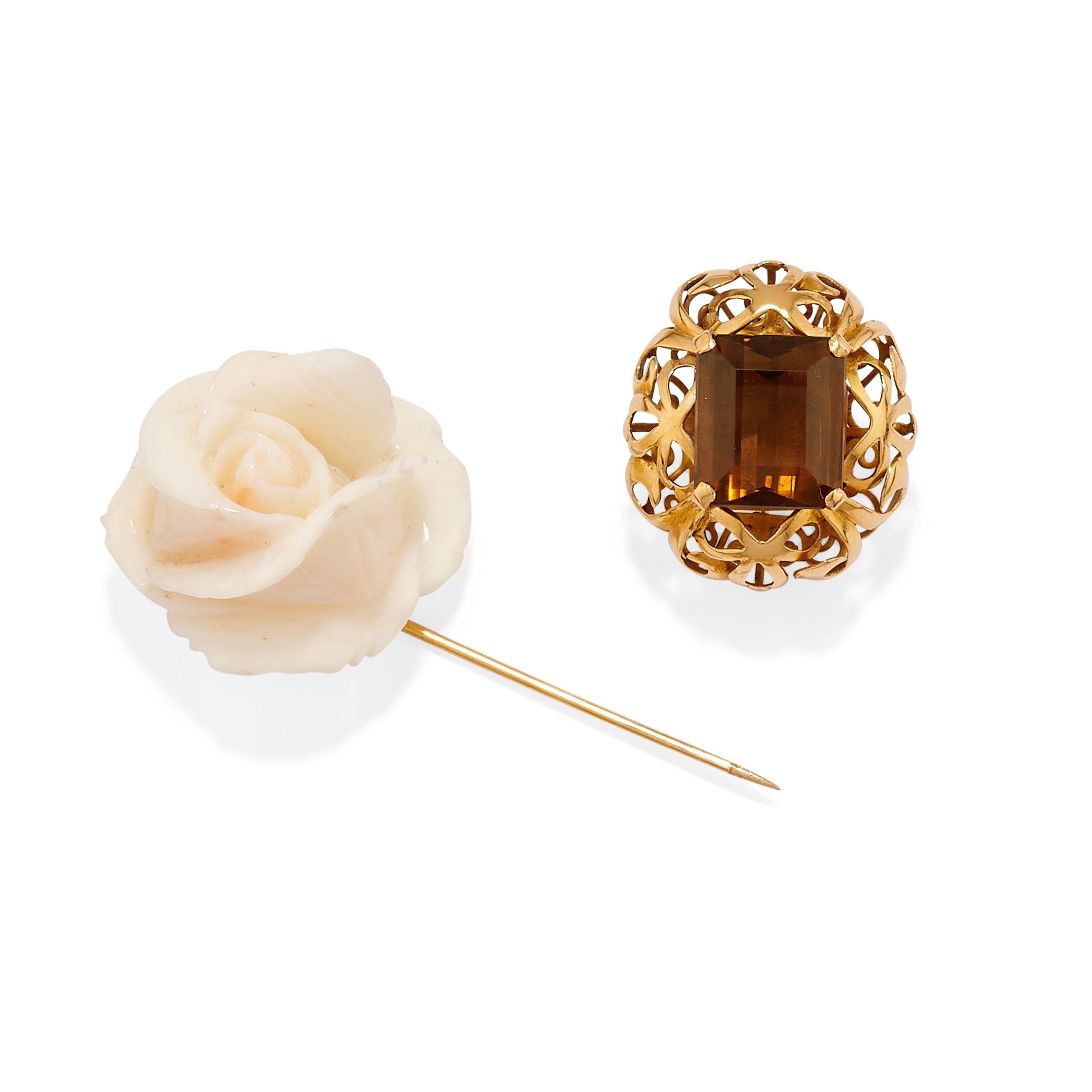 una con rosa in corallo bianco ed una con topazio su montatura traforata.