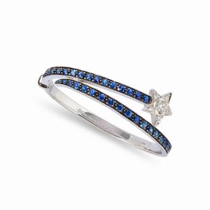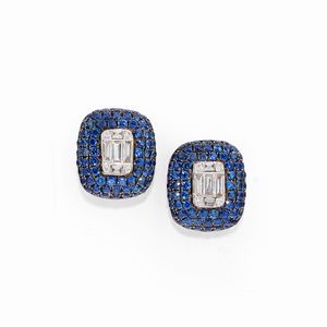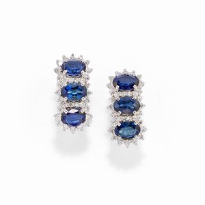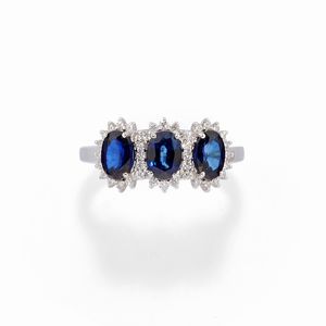 in oro bianco 18k, Peso g 4,80 cm 1,80x0,80 zaffiri taglio ovale per totale ct 2,00 circa e contornati da diamanti [..]