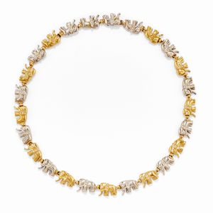 in oro bicolore 18k, Peso g 62,00 cm 42,00 a girocollo, decorata da diamanti taglio brillante per totale ct 1,20 [..]