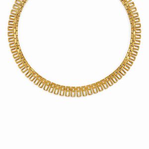 in oro giallo 18k, Peso g 40,70 cm 42,50 a girocollo, realizzato con motivi geometrici.