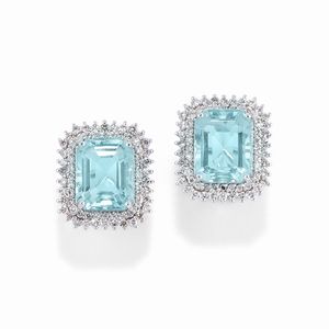 in oro bianco 18k, Peso g 9,10 cm 1,60x1,80 al centro acquamarine taglio rettangolare a contorno ottagonale per [..]