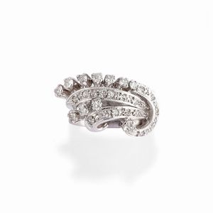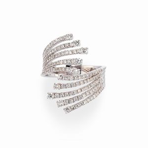 in oro bianco 18k, Peso g 7,20 misura 13 realizzato a volute in diamanti taglio brillante per totale ct 1,35 (caratura [..]