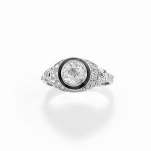 in oro bianco 18k, Peso g 4,50 misura 13 al centro un diamante taglio vecchio di ct 1,20 circa prob. colore L, [..]