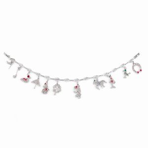 in platino, Peso g 15,00 cm 18,50 con undici pendenti di varie forme e raffigurazioni, diamanti taglio brillante [..]