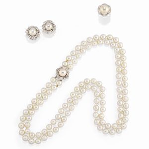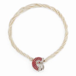 in oro bianco 18k, Peso g 35,80 cm 41,50 realizzata a cinque fili di perle coltivate con al centro chiusura indossabile [..]