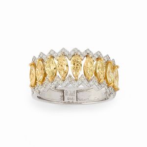 in oro bicolore 18k, Peso g 4,98 misura 13 a fascia, realizzato con diamanti incolore e fancy yallow taglio navette [..]