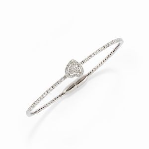 in oro bianco 18k, Peso g 8,60 diametro interno 5,50 centrale a cuore, diamanti taglio brillante per totale ct [..]