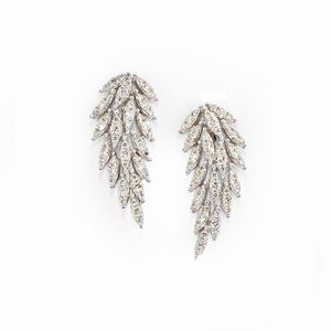 in oro bianco 18k, Peso g 28,30 cm 2,30-2,80-40,00 composta da coppia di orecchini con chiusura a clip, e pendente [..]