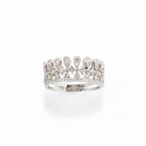 in oro bianco 18k, Peso g 2,90 misura 13 sommità a corona con diamanti taglio brillante e carrè per totale ct [..]