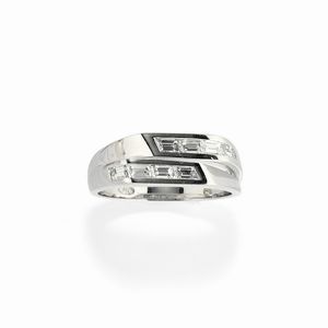 in oro bianco 18k, Peso g 2,30 misura 13,5 con diamanti taglio baguette e brillanti per totale ct 0,25 (caratura [..]