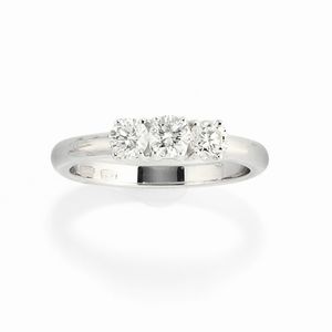 in oro bianco 18k, Peso g 3,80 misura 12 con tre diamanti taglio brillante per totale ct 0,50 circa.